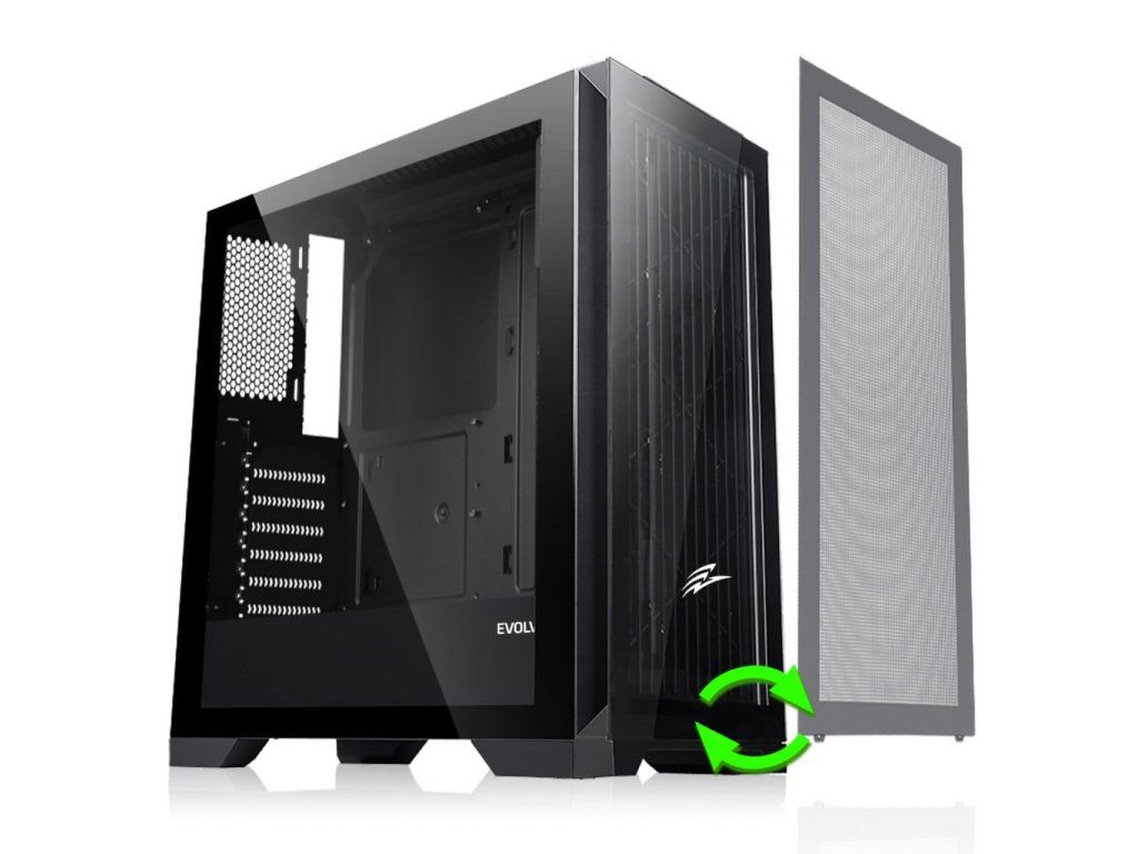 EVOLVEO Ptero Q2, 2x čelní panel: sklo/mřížka, case ATX, černá