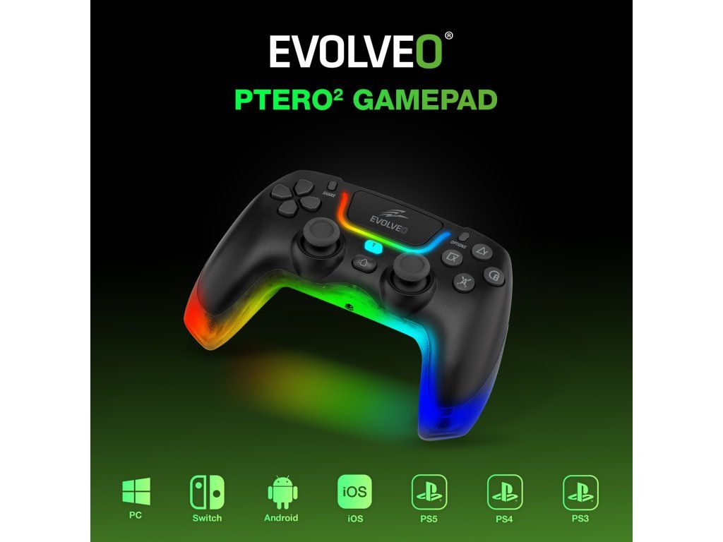 EVOLVEO Ptero2, bezdrôtový & drôtový gamepad pre PC, PS3/4/5, iOS, Android, Switch, čierny