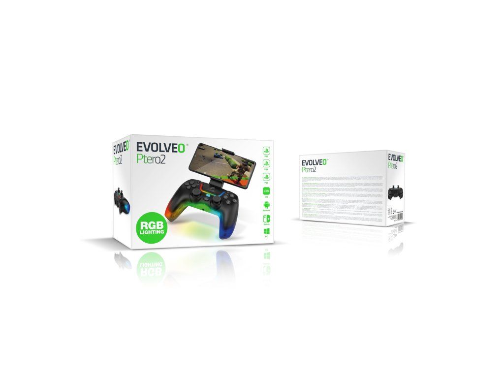 EVOLVEO Ptero2, bezdrátový & drátový gamepad pro PC, PS3/4/5, iOS, Android, Switch, černý