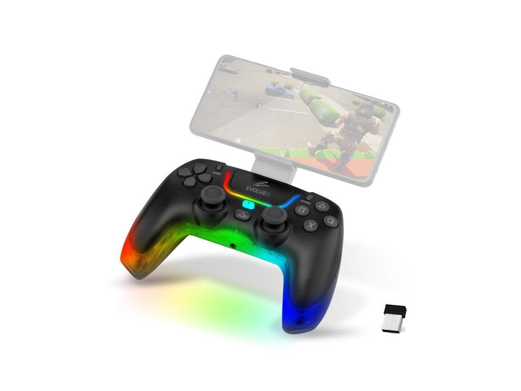 Pokud prostě milujete videohry a je vám jedno, na jakém stroji běží, EVOLVEO Ptero2 je pomůckou stvořenou přesně pro vás. Tento gamepad totiž – stejně jako vy – není vybíravý. Jako ryba ve vodě se cítí s platformami Sony PlayStation (PS3, PS4 a při hraní PS4 her i PS5), PC i Nintendo Switch. A aby toho nebylo málo, skvěle vám poslouží i při hraní her na mobilu či tabletu, ať už jde o iPhone, nebo o zařízení s Androidem.Když se telefon a ovladač spojí v jeden celek