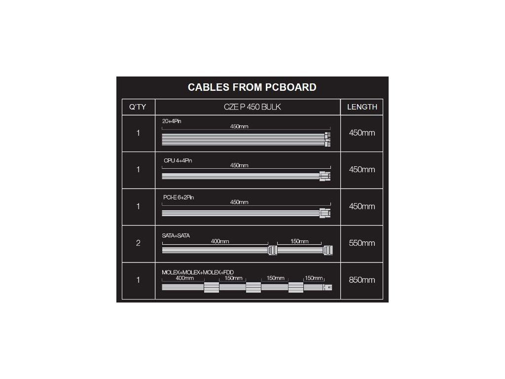 Specifikace • CE certifikace, norma RoHs • tichý 12 cm větrák s regulací otáček • kabeláž v délce 40 cm • 1x napájecí kabel pro MB 20+4pin • 1x napájecí kabel s 3x MOLEX konektorem a 1x fd3 • 1x napájecí kabel cpu 4pin (8pin - 4+4) • 2x napájecí kabel s 2x S-ATA konektorem • 1x napájecí kabel VGA PCI-E 6+2pinDodatočné parametre