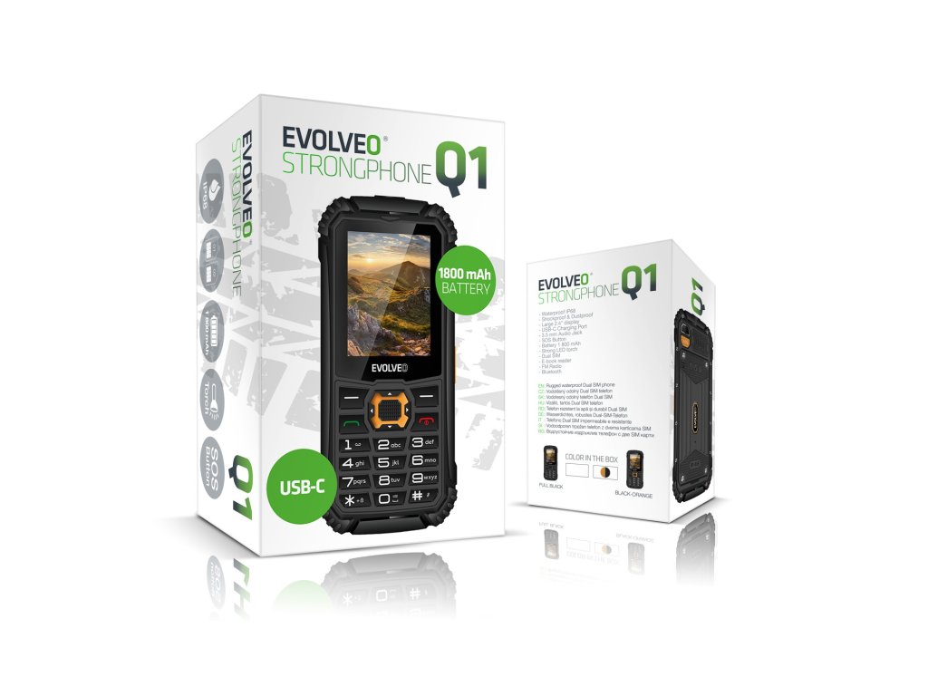 • EVOLVEO StrongPhone Q1, vodotěsný odolný Dual SIM telefon, černý (PartNo: SGP-Q1-BK) • EVOLVEO StrongPhone Q1, vodotěsný odolný Dual SIM telefon, černo-oranžový (PartNo: SGP-Q1-BO)PŘÍPLATKOVÉ PŘÍSLUŠENSTVÍ: