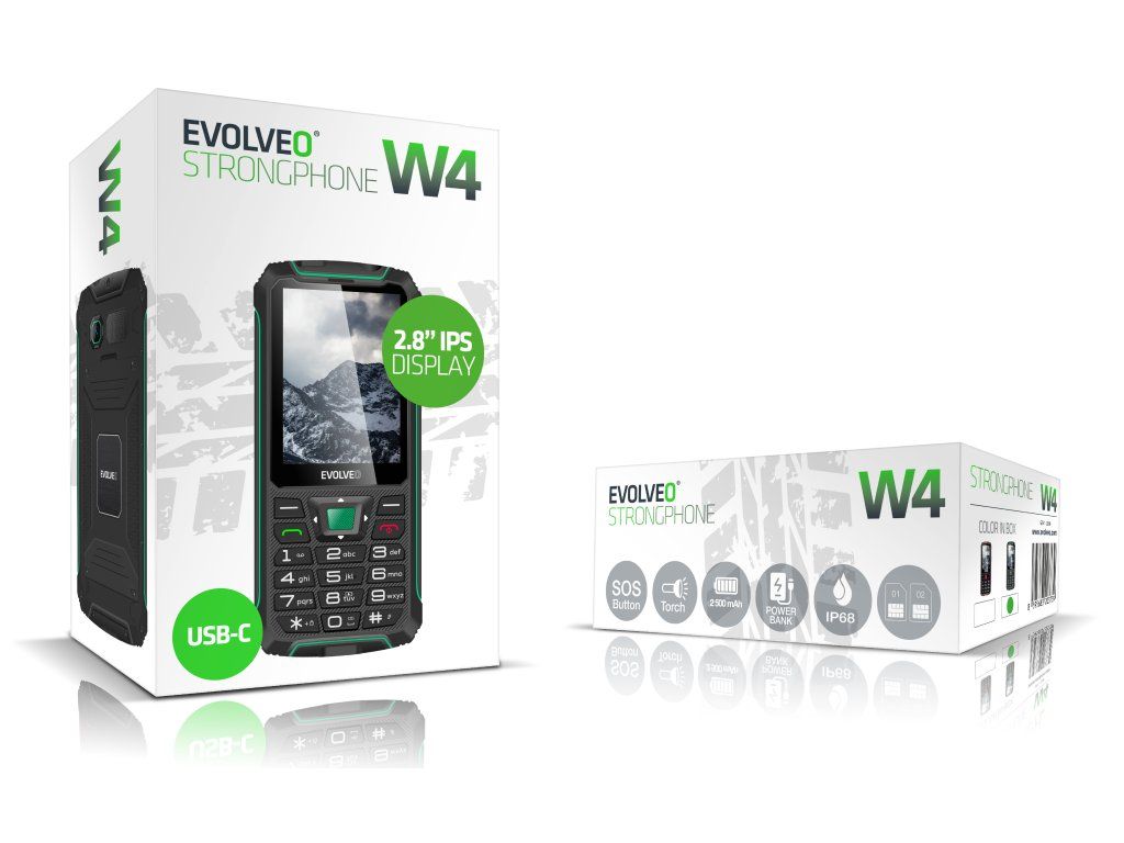 • EVOLVEO StrongPhone W4, vodotěsný odolný Dual SIM telefon, černo-červený (PartNo: SGP-W4-BR) • EVOLVEO StrongPhone W4, vodotěsný odolný Dual SIM telefon, černo-zelený (PartNo: SGP-W4-BG)PŘÍPLATKOVÉ PŘÍSLUŠENSTVÍ: