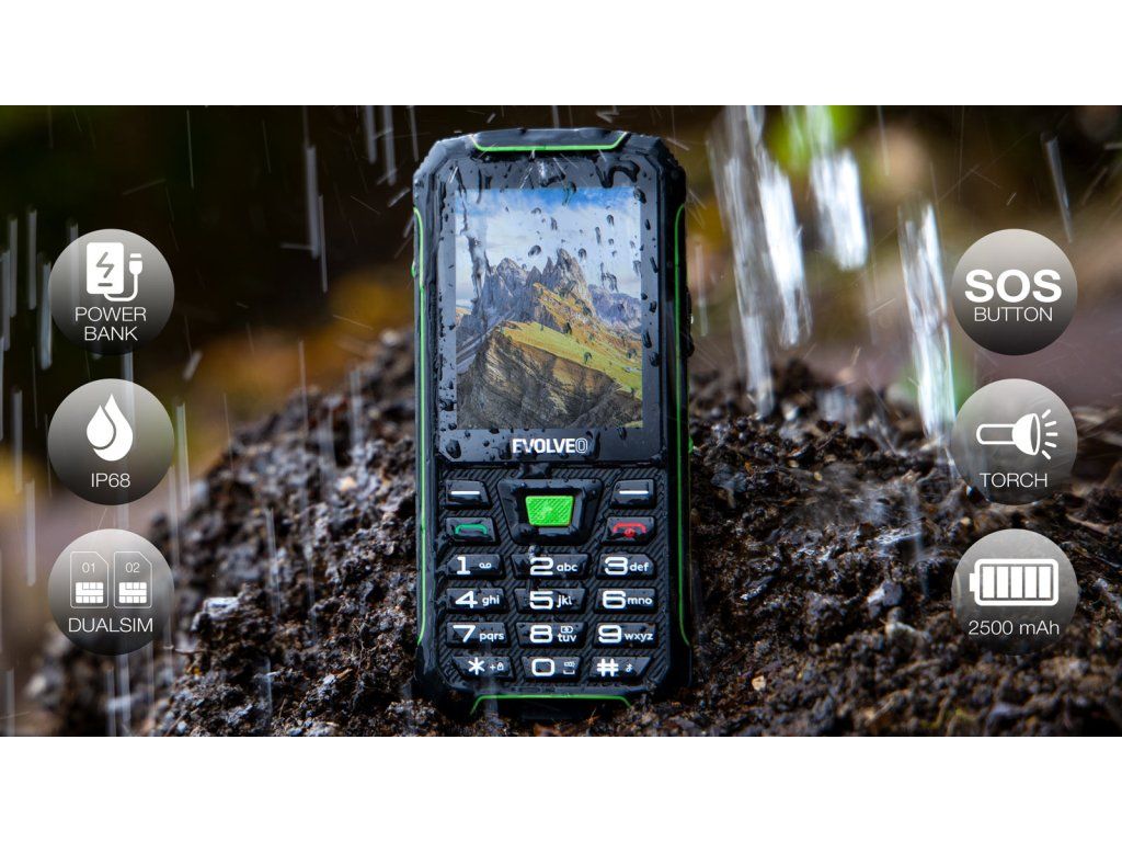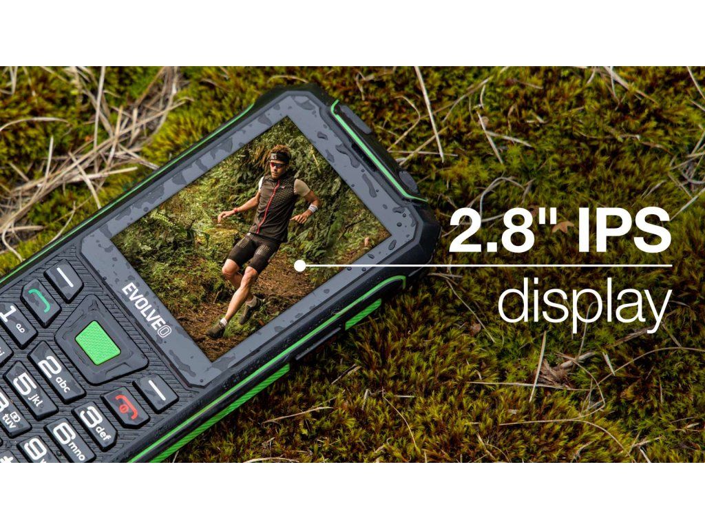 EVOLVEO StrongPhone W4, IP68 odolný Dual SIM telefón, 2,8'' LCD, 2500mAh, Powerbanka, čierno-zelený