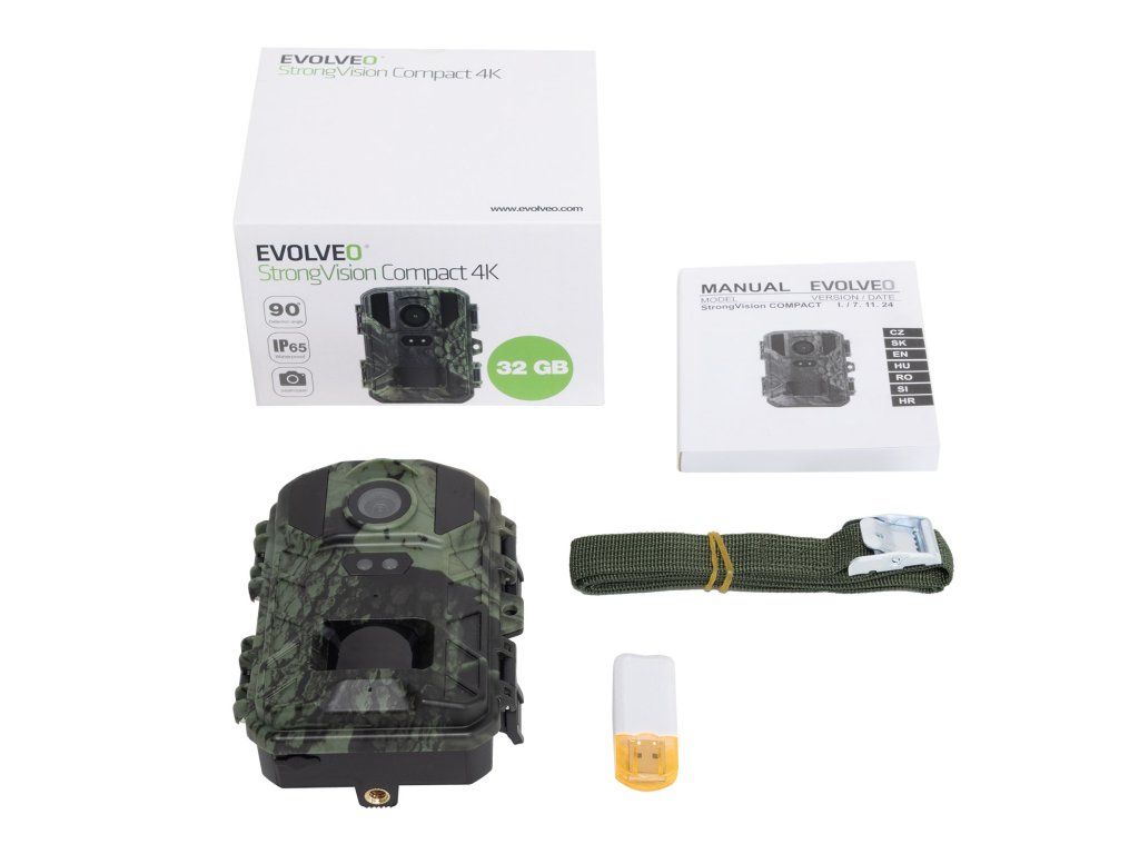 • Fotopast (kamera) • SD karta 32 GB • USB 2.0 čtečka karet • Pásek pro uchycení • Uživatelský manuál (CZ, SK, EN, HU, RO, SI, HR)PŘÍPLATKOVÉ PŘÍSLUŠENSTVÍ: