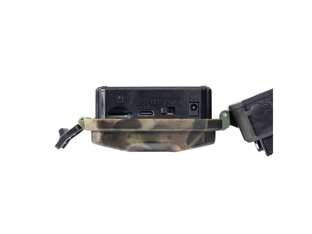 • Obrazový snímač: 3 Mpx barevný CMOS • Objektiv: F=3,1 mm, zorné pole 90° • Rozlišení fotografií: 24 Mpx / 50 Mpx (interpolované) • Rozlišení videa: 4K / 1080P / 720P • Formát fotografií: JPEG • Formát videa: MP4 • Délka videa: nastavitelné 3 s – 10 min • 4x neviditelné IR LED diody (940 nm) • Dosah přísvitu: až 20 m • Detekce pohybu (PIR senzor) • Citlivost PIR senzoru: nastavitelná (vysoká / normální / nízká) • Reakční doba: 0,8 s • Interval spuštění: 5 s – 60 min • Napájení: 4 × AA baterie, 1,5 V • Možnost připojení externího napájení: DC 6 V 1,5 A • Kompatibilita se solárním panelem: ano (6 V) • Spotřeba v pohotovostním režimu: < 0,1 mA • Výdrž v pohotovostním režimu: až 4 měsíce • Podporované paměťové karty: microSD až 256 GB • 32GB SD karta je součástí balení • Možnost přepsání starých záznamů: ano • Videozáznam se zvukem: ano • Časové razítko: datum, čas, teplota, fáze měsíce • Vestavěný LCD displej: 2,0'' barevný TFT • Jazyk menu: CZ,SK,EN,HU,RO,Si,HR • Krytí: IP65 (voděodolnost a prachotěsnost) • Provozní teplota: -10 °C - +70 °C • Provozní vlhkost: 5 % – 95 % • Rozměry: 108 × 88 × 60 mm • Hmotnost: 0,32 kg Rozhraní a konektivita • USB-C port: pro připojení k PC (není určen pro napájení) • Slot pro microSD kartu • Port pro externí napájeníOBSAH BALENÍ: