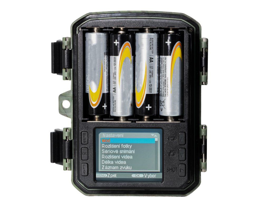 Zařízení lze napájet 4 AA bateriemi, které zajišťují dlouhou výdrž až 4 měsíce v pohotovostním režimu. Pro stacionární použití je zde možnost napájení pomocí externího 6V zdroje s běžným kulatým konektorem. Díky inteligentnímu řízení spotřeby se kamera aktivuje pouze při detekci pohybu, čímž šetří energii a prodlužuje dobu provozu. Výhodou je snadná výměna baterií díky přístupnému vnitřnímu prostoru se silným těsněním proti vlhkosti. Pro použití v odlehlých oblastech můžete připojit i solární panel nebo externí akumulátor, což je ideální pro trvalý monitoring bez nutnosti častých zásahů. Úsporný provoz dělá z tohoto zařízení spolehlivého partnera pro dlouhodobé sledování bez nutnosti neustálého dohledu. Fotopast tak funguje samostatně a bezúdržbově, ať ji umístíte kamkoli – do lesa, na pole nebo k chatě.SPECIFIKACE: