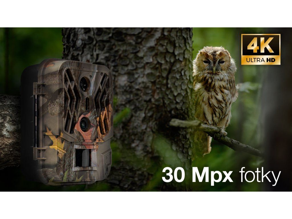 • Časosběrný záznam - Foto/Video/Foto&video/Multishot • Dual Kamera - bezhlučná samostatná noční a denní kamera • Denní kamera - video až 4K ULTRA HD 30fps, foto až 30mpx • Noční kamera - černobílé video až Full HD, foto až 8mpx • 2,4'' TFT Displej - pro snadné ovládání • Podpora SD karet až 256GB • Napájení: 10xAA nebo Li-ion 8 000mAh • Úhel PIR snímání 90° / Dosvit do 20m • Noční přísvit - 6 x 940nm IR výkonné 3W IR LED