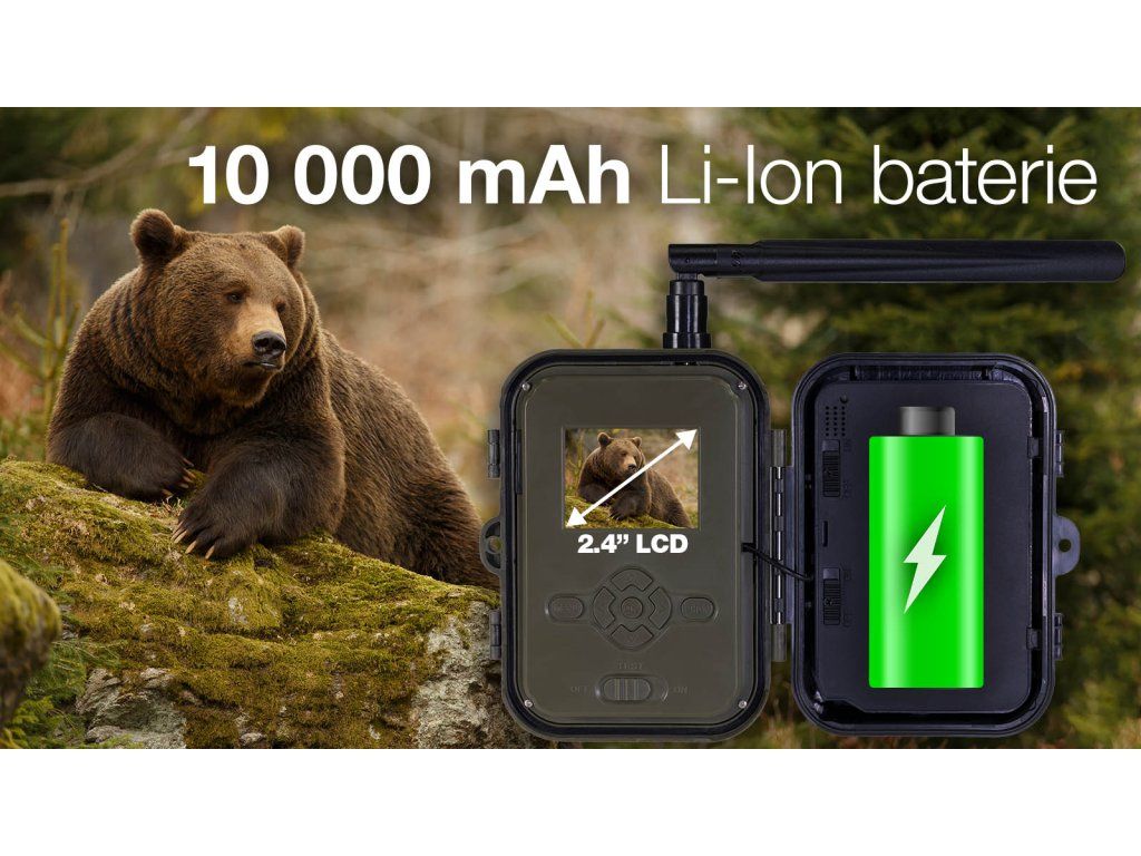 Fotopast lze použít univerzálně i k zabezpečení vašeho majetku, všude tam, kde nemáte pevné připojení k internetu pro běžný kamerový systém. Například na vaši chatu na stavbu domu, nebo jako zabezpečení garáže. Vždy když kamera rozezná pohyb informuje vás notifikací do telefonu, nebo na vaše chytré hodinky, V aplikaci se pak můžete podívat na zachycený snímek nebo video. Popřípadě díky funkci LiveView můžete vidět živý náhled. Díky integrovaným PIR čidlům Vám neunikne žádný pohyb a kamera se aktivuje jen v momentě, kdy je to potřeba, čímž se prodlužuje výdrž provozu na baterie.Li-Ion 10 000 mAh