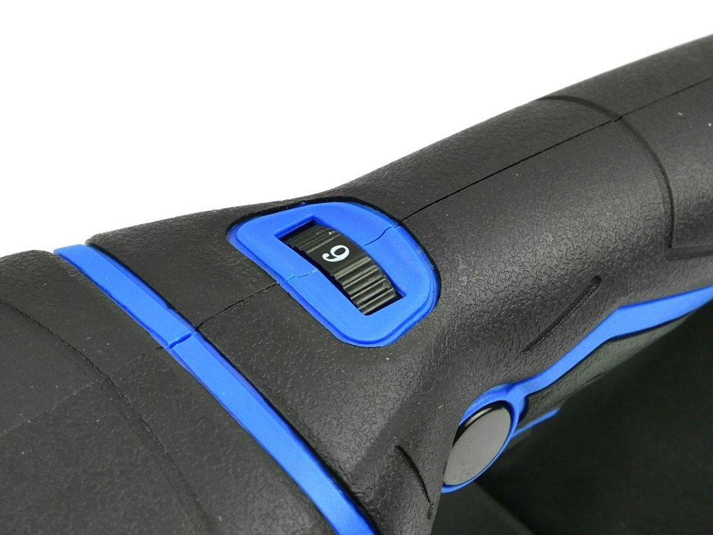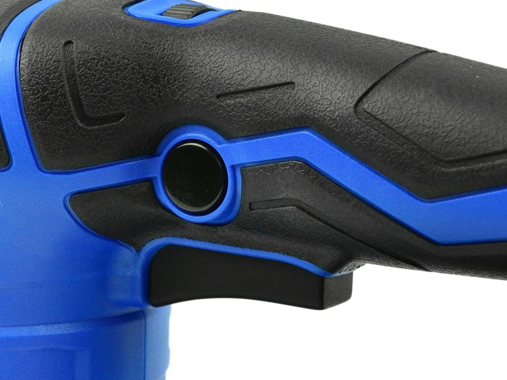 - rukojeť brusky s protiskluzovými pryžovými vložkami, která zajišťuje pevné uchopení nástroje