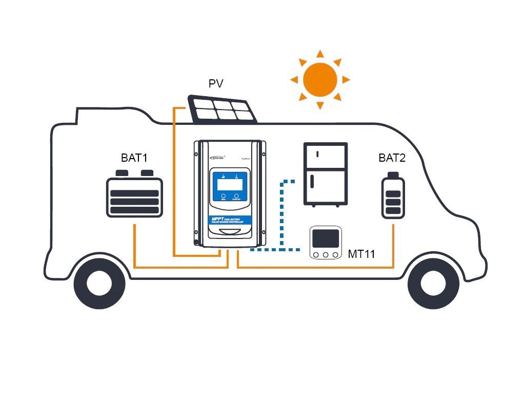 Externí displej Epever EPsolar MT11 funguje jako vzdálený ovladač pro regulátory EPsolar DuoRacer. Je vhodný pro solární systémy pro karavany, lodě a další vozidla. V reálném čase monitoruje a zobrazuje všechna důležitá data. Pomocí displeje procházíte parametry regulátoru, nastavujete typ baterie, jednotky teploty a mažete vygenerovanou energii.