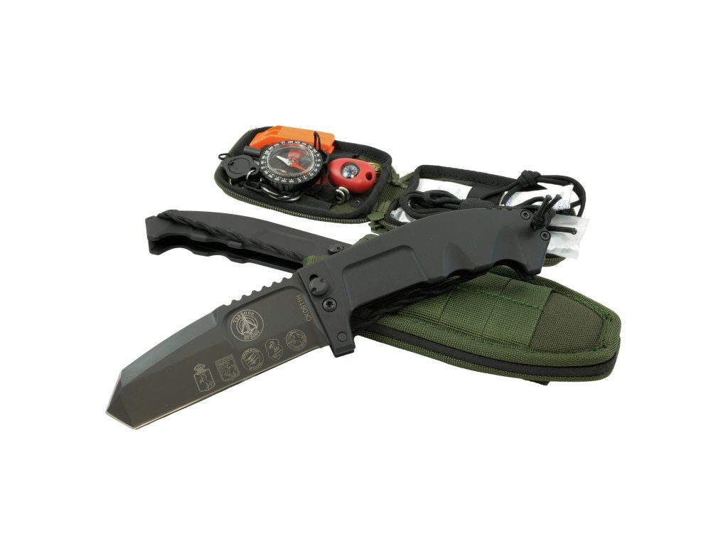 Obsahuje puzdro s píšťalkou, pílku na drôty, štítky na čistenie vody, kompas, medený drôt, pazúrik, malú baterku, 2,5 m lano, diamantovú brúsku.