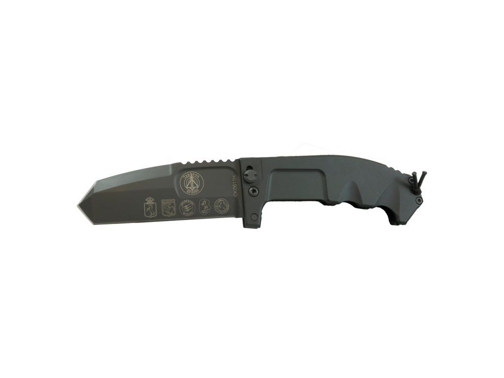 Má leštenú čepeľ s hladkou hranou z nehrdzavejúcej ocele Böhler N690, otvára sa manuálne a dodatočná ochrana v podobe manuálnej poistky medzi rukoväťou a čepeľou zabraňuje náhodnému zavretiu noža.