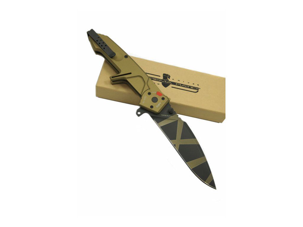 Rukoväť je z eloxovaného hliníka pieskovej farby, v spodnej časti má rozbíjač skla. So sponou na vrecká.