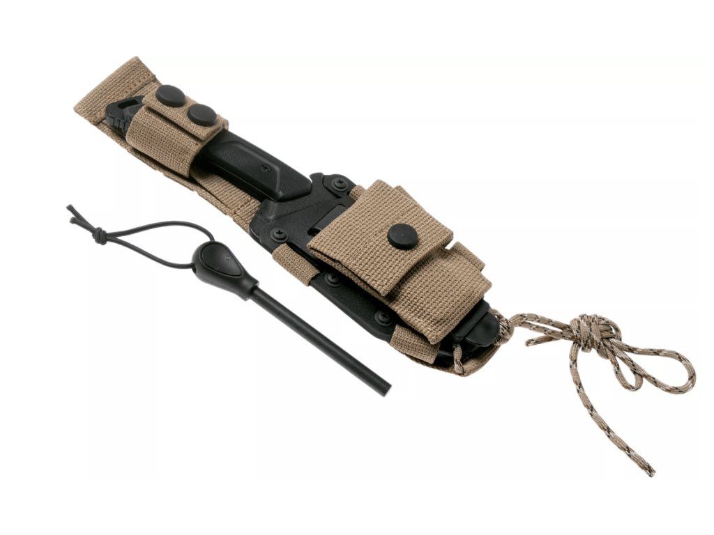 Dodáva sa s puzdrom Kydex, obojstranným brúsnym kameňom a Firesteel na zapaľovanie ohňa.