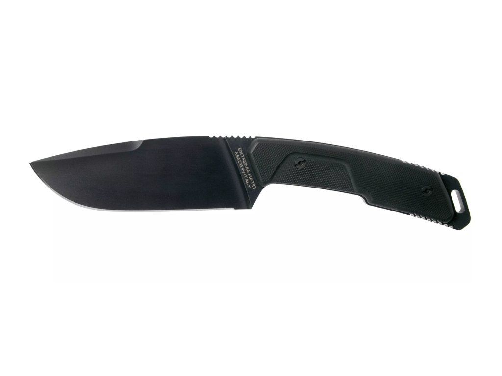 Má pevnú čepeľ z ocele D2 s čiernou povrchovou úpravou, potiahnutá novým produktom na báze teflónu „EXP DARK“. S ergonomickou rukoväťou z čierneho materiálu G10.