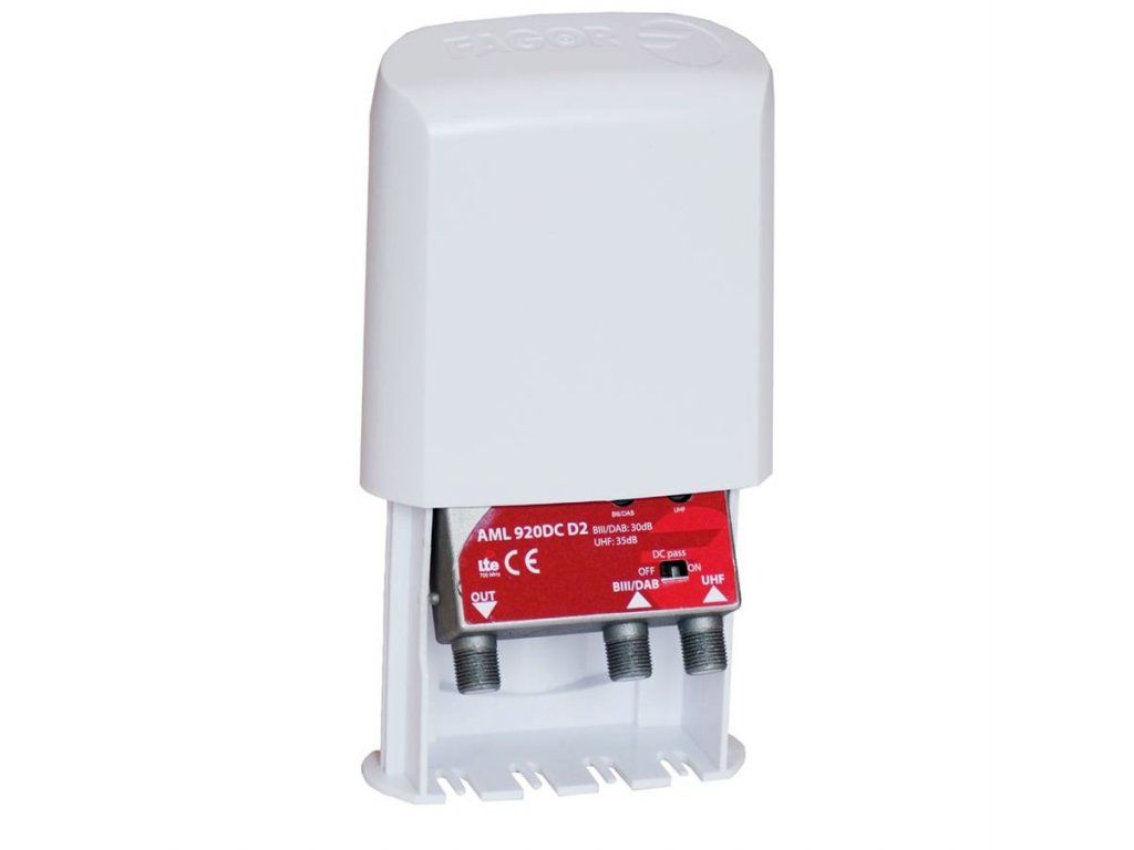 FAGOR AML-920 zosilňovač, 35dB, 2 vstupy UHF-UHF, LTE700, DC