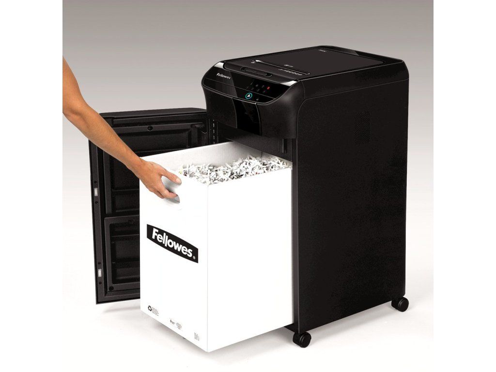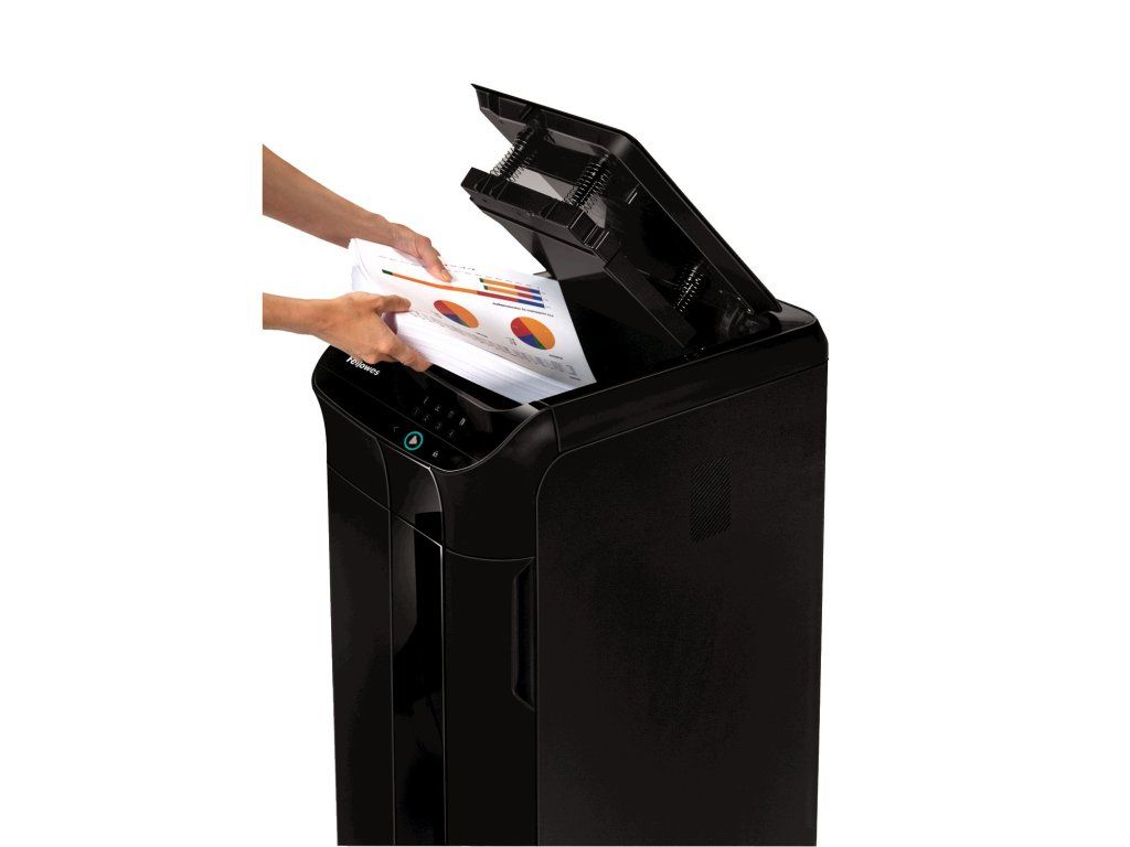 Ideální řešení automatické skartace papíru pro kanceláře do 5-ti uživatelů představuje druhá generace osvědčeného modelu AutoMax. Světový lídr v technologii pro skartování Fellowes Vás o tom přesvědčí. Automatický skartovací stroj Vám umožní věnovat se prospěšnějším kancelářským činnostem, nežli je vkládání papíru do běžného skartovače. AutoMax 550 C je schopen na jeden pracovní cyklus vyskartovat ze zásobníku až 350 listů 70g papíru v křížovém řezu 4×38 mm. Je navržen pro nepřetržitý provoz. Skartovač je vybaven vstupní štěrbinou pro alternativní ruční podání až 12 listů papíru současně. Technologie AutoFeed zajistí automatické podání listů papíru ze zásobníku. Ze zásobníku je možno skartovat běžný papír, papír sešitý sponkou nebo sepnutý svorkou (max. do 20 listů). Systém AutoReverse – zajistí přerušení skartace a krátký zpětný chod při záseku podávaného papíru. Skládaný papír, poštovní obálky i s obsahem, CD/DVD nosiče a kreditní karty se skartují prostřednictvím otvoru pro manuální podávání. Vstupní šíře 230 mm. Skartovač systémem „SMART LOCK“ elektronicky uzamkne po vložení čtyřmístného PIN kódu dokumenty po dobu celého cyklu skartace. Je tak zaručeno, že nikdo jiný se ke skartovanému obsahu nedostane (dokonce ani po odpojení a znovuzapojení stroje do el. sítě). Ovládání je zajištěno prostřednictvím dotykového panelu s LED podsvětlením. Samozřejmostí je indikace přehřátí, otevřených dvířek koše, plného odpadního koše a případného kolizního stavu (pokud je na vstupu nežádoucí obsah). Řezné nože ze speciální tvrzené oceli, silný motor a kovové převodové součásti předurčují AutoMax pro dlouhodobé a bezproblémové využití. Tento model je nadimenzován pro dlouhodobý nepřetržitý provoz při zachování velmi nízké hlučnosti – „SilentShred“. V případě nečinnosti delší než 2 min se stroj automaticky vypne – „Sleep MODE“, šetří tím odběr el. energie. Svou kapacitou je vhodný týmová pracoviště s 3 až 5-ti lidmi, ideální pro „open office'', konferenční místnosti, apod. Orientační doba skartace při plném zásobníku je 13–15 min s ohledem na typ skartovaného materiálu. Objem koše 83 litrů, rozměry (Š x H x V) 441×578×890 mm, hmotnost 33,6 kg, napájení 230–240 V/ 50Hz. PARAMETRY: • Automatický skartovač: ano • Typ řezu: křížový řez • Velikost odpadu po skartaci: 4 x 38 mm • Kapacita skartace z automatického zásobníku: 350 listů / 70g papíru • Doba pro skartaci plného zásobníku: 15 min • Skartovací kapacita: 12 listů / 70g papíru • Objem koše: 68 L • Objem koše ve skartovaném papíru: 400 listů / 80g papíru • Doporučený počet uživatelů: 3 - 5 osob • Vstupní šířka: 230 mm • Skartuje také: CD | karty | spony: ano | ano | ano • Hlučnost: 65 dB • Stupeň utajení dle NBÚ: NNI 1 • Certifikováno NBÚ: ano • Stupeň utajení dle DIN 66399: P - 4 • Doba nepřetržité skartace: 45 min • Příkon: 920 W • Napájení: 230 V • Rozměry (Š x V x H): 390mm x 815mm x 580mm • Hmotnost: 31.8 kgDodatočné parametre