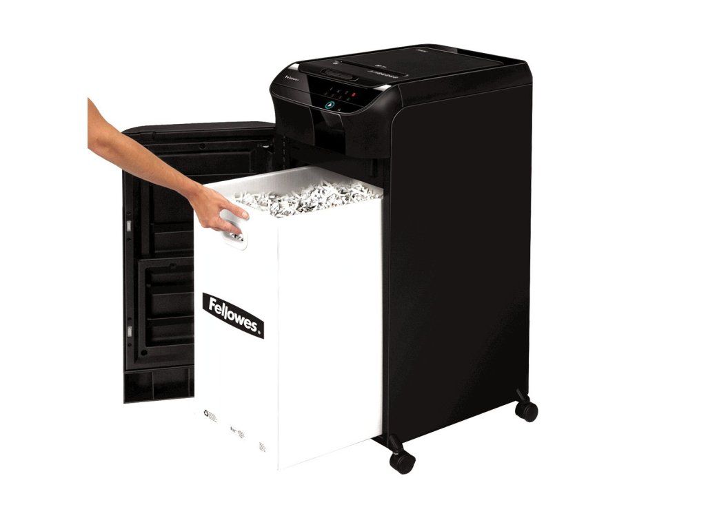 Ideální řešení automatické skartace papíru pro kanceláře s více (5+) uživateli představuje druhá generace osvědčeného modelu AutoMax. Světový lídr v technologii pro skartování Fellowes Vás o tom přesvědčí. Automatický skartovací stroj Vám umožní věnovat se prospěšnějším kancelářským činnostem, nežli je vkládání papíru do běžného skartovače. AutoMax 550 C je schopen na jeden pracovní cyklus vyskartovat ze zásobníku až 550 listů 70g papíru v křížovém řezu 4×38 mm. Je navržen pro nepřetržitý provoz. Skartovač je vybaven vstupní štěrbinou pro alternativní ruční podání až 14 listů papíru současně. Ze zásobníku je možno skartovat běžný papír, papír sešitý sponkou nebo sepnutý svorkou (max. do 20 listů). Skládaný papír, poštovní obálky i s obsahem, CD/DVD nosiče a kreditní karty se skartují prostřednictvím otvoru pro manuální podávání. Ovládání je zajištěno prostřednictvím dotykového panelu s LED podsvětlením. Samozřejmostí je indikace přehřátí, otevřených dvířek koše, plného odpadního koše a případného kolizního stavu (pokud je na vstupu nežádoucí obsah). Řezné nože ze speciální tvrzené oceli, silný motor a kovové převodové součásti předurčují AutoMax pro dlouhodobé a bezproblémové využití. Orientační doba skartace při plném zásobníku je 13-15 min s ohledem na typ skartovaného materiálu. SMART LOCK - elektronicky uzamče po vložení čtyřmístného PIN kódu dokumenty po dobu celého cyklu skartace. Je tak zaručeno, že nikdo jiný se ke skartovanému obsahu nedostane (dokonce ani po odpojení a znovuzapojení stroje do el. sítě). SilentShred - tento model je nadimenzován pro dlouhodobý nepřetržitý provoz při zachování velmi nízké hlučnosti Sleep MODE - v případě nečinnosti delší než 2 min se stroj automaticky vypne, šetří tím odběr el. energie. Svou kapacitou je vhodný týmová pracoviště s 5-ti a více lidmi, ideální pro „open office'', konferenční místnosti, apod. SMART LOCK™ - elektronicky uzamče dokumenty po vložení PIN kódu, po dobu celého cyklu skartace. Accufeed™ - automatické podávání papíru pro střední a vyšší zátěž, šetří čas strávený podáváním papíru. Auto-Reverse™ - zajistí přerušení skartace a zpětný chod při záseku. PARAMETRY: • Automatický skartovač: ano • Typ řezu: křížový řez • Velikost odpadu po skartaci: 4 x 38 mm • Kapacita skartace z automatického zásobníku: 550 listů / 70g papíru • Doba pro skartaci plného zásobníku: 15 min • Skartovací kapacita: 14 listů / 70g papíru • Objem koše: 83 L • Objem koše ve skartovaném papíru: 550 listů / 80g papíru • Doporučený počet uživatelů: 5+ osob • Vstupní šířka: 230 mm • Skartuje také: CD | karty | spony: ano | ano | ano • Hlučnost: 70 dB • Stupeň utajení dle NBÚ: NNI 1 • Certifikováno NBÚ: ano • Stupeň utajení dle DIN 66399: P - 4 • Doba nepřetržité skartace: bez omezení min • Příkon: 920 W • Napájení: 230 V • Rozměry (Š x V x H): 440mm x 890mm x 580mm • Hmotnost: 33.6 kgDodatočné parametre