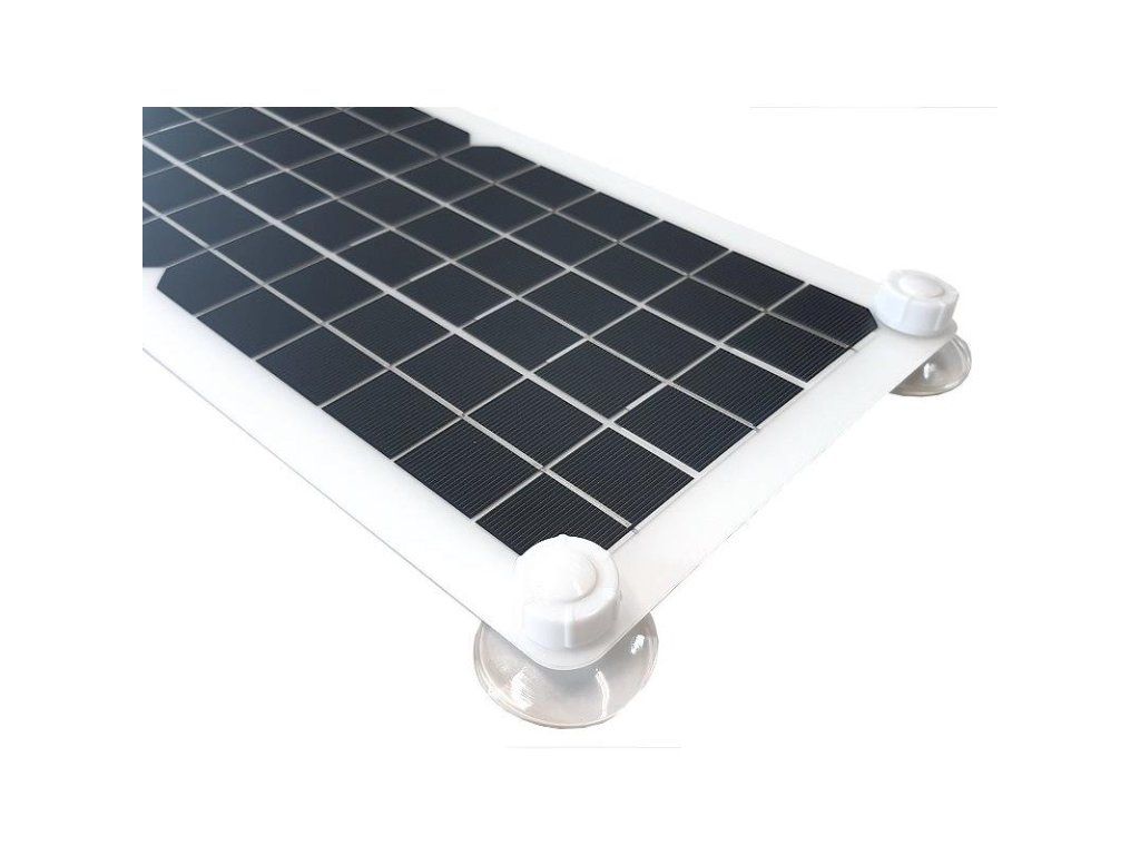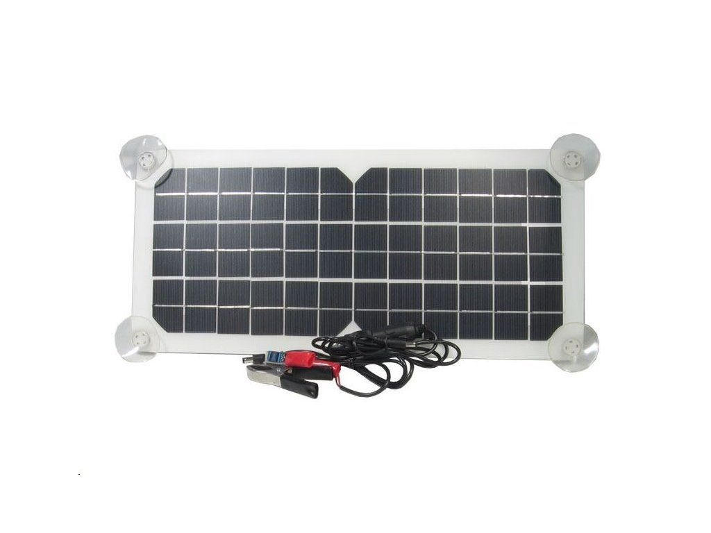 Přiložený kabel zapojte do zásuvky 12V (nutné trvalé propojení s baterií, nikoli přes klíček zapalování), panel umístěte pomocí přísavek za okno a Vaši baterii bude dodávána potřebná energie pro kompenzaci spotřeby připojených zařízení a samovybíjení.