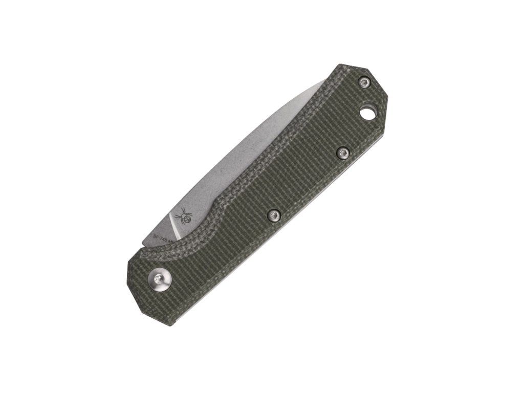 Rukoväť je vyrobená z materiálu Micarta zelenej farby, s dierkou na šnúrku. Bez spony.