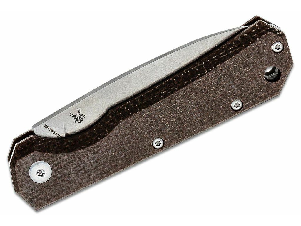 Rukoväť je vyrobená z ľahkého materiálu Micarta hnedej farby. Bez spony.