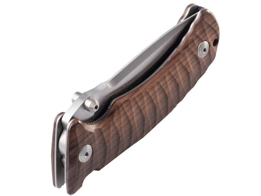 S čepeľou s hladkou hranou z ocele s prímesou kobaltu N690Co so saténovým povrchom, otvára sa palcovými kolíkmi a zaisťuje ju poistka Linerlock doplnená systémom LAWKS.