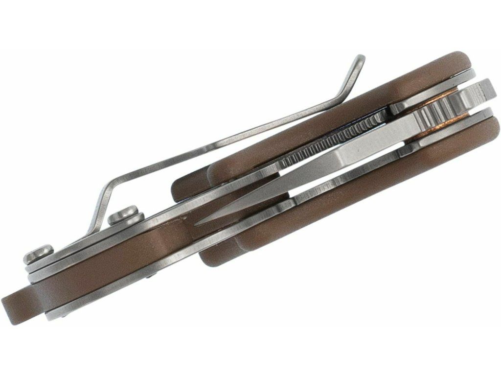 Rukoväť je z materiálu FRN hnedej farby, s oceľovým krúžkom pre pohodlnejšie držanie a dierkou na šnúrku. So sponou na vrecká.