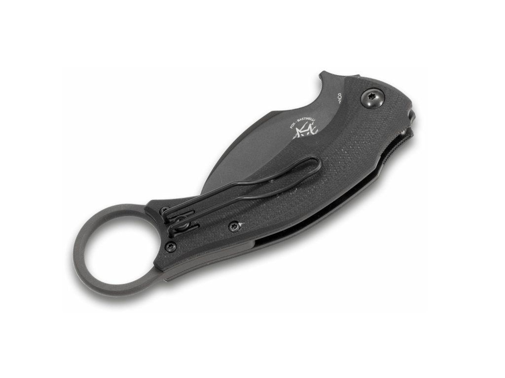 Zatvárací karambit Fox Knives FX-591 Black Bird Bastinelli Black je štýlový zatvárací nôž v spolupráci so spoločnosťou Bastinelli. Je vhodný na sebaobranu, ale aj na každodenné (EDC) nosenie na otváranie balíkov alebo rezanie povrazov.