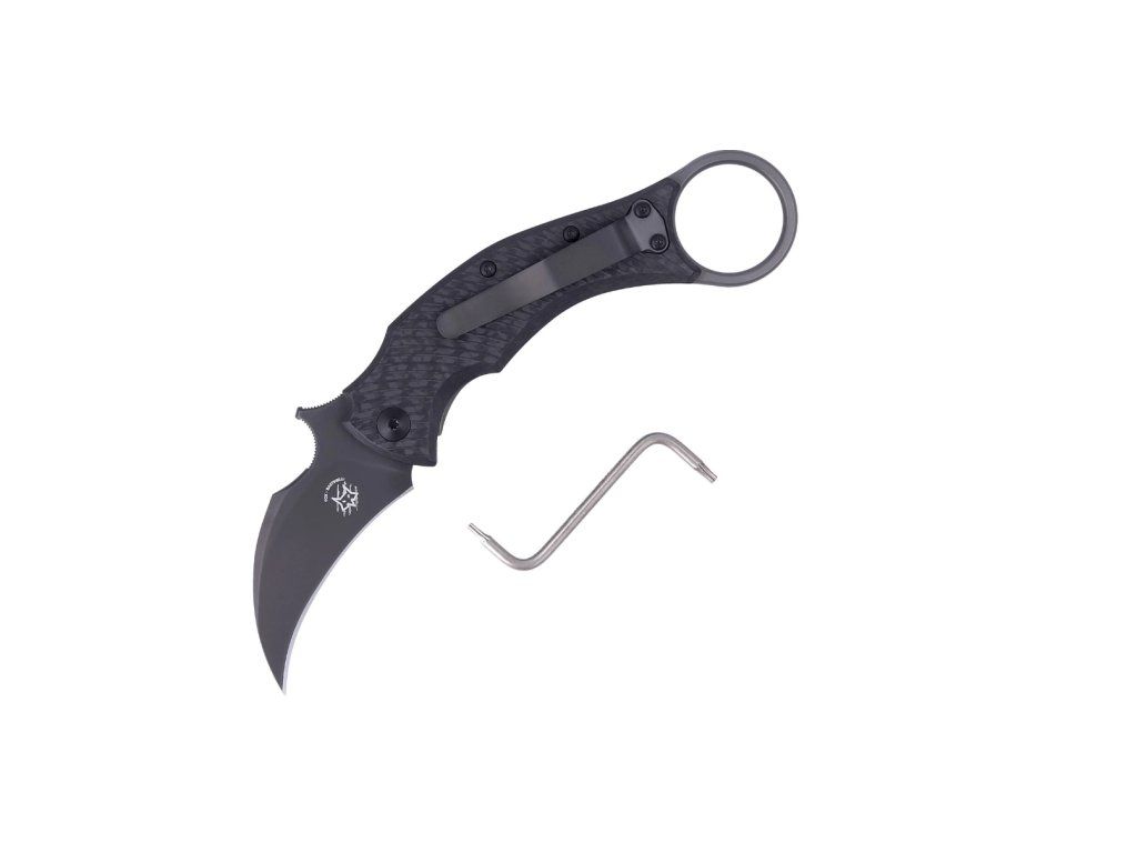 FOX Knives FX-591 Tic B Black Bird vreckový nôž - karambit 6,5 cm, celočierny, uhlíkové vlákno