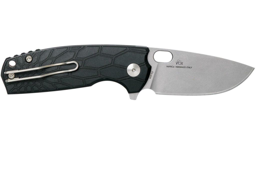 S čepeľou s hladkou hranou z nerezovej ocele N690 s povrchom Stonewash, otvára sa palcovým otvorom v čepeli alebo vyklápačom Flipper, zaisťuje ju poistka Linerlock.