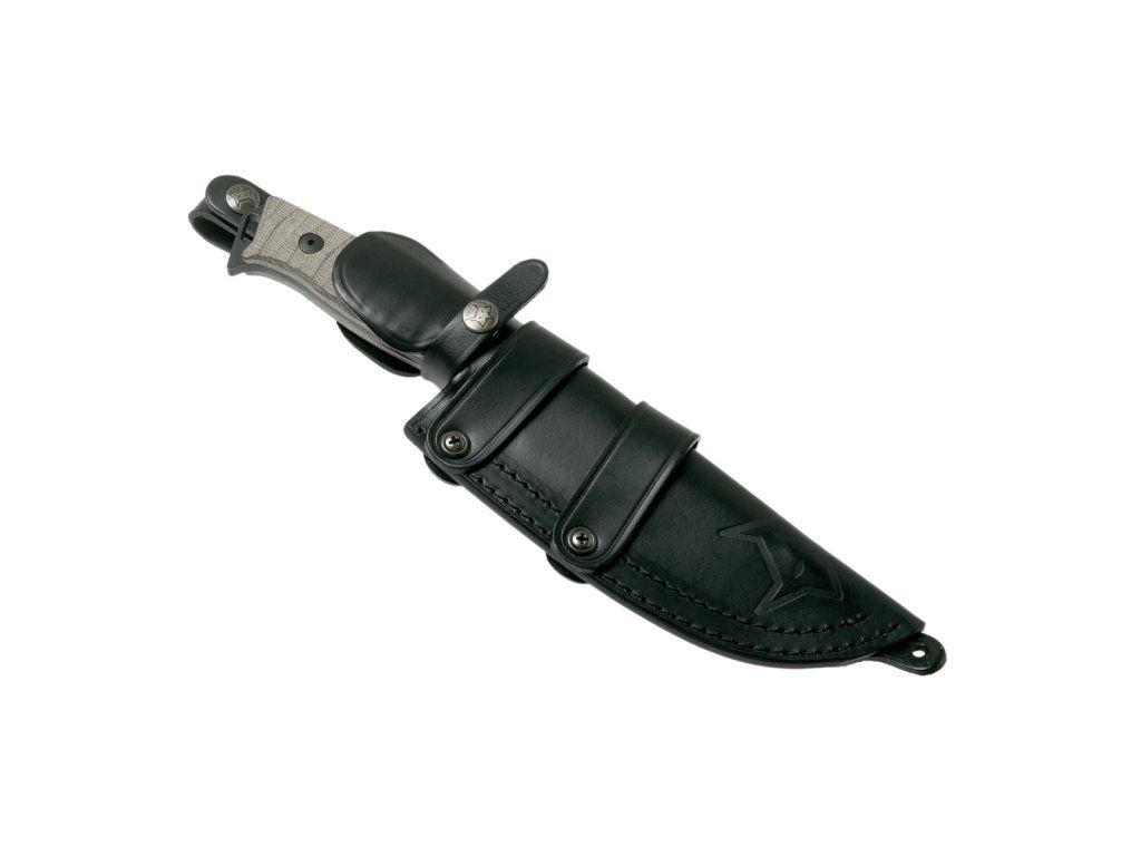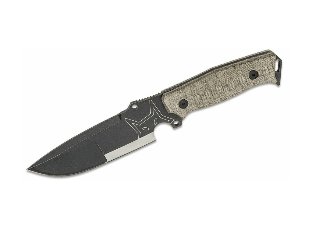 Má pevnú čepeľ s hladkou hranou z nástrojovej ocele D2 s čiernou povrchovou úpravou Idroglider Stonewash s motívom líšky.