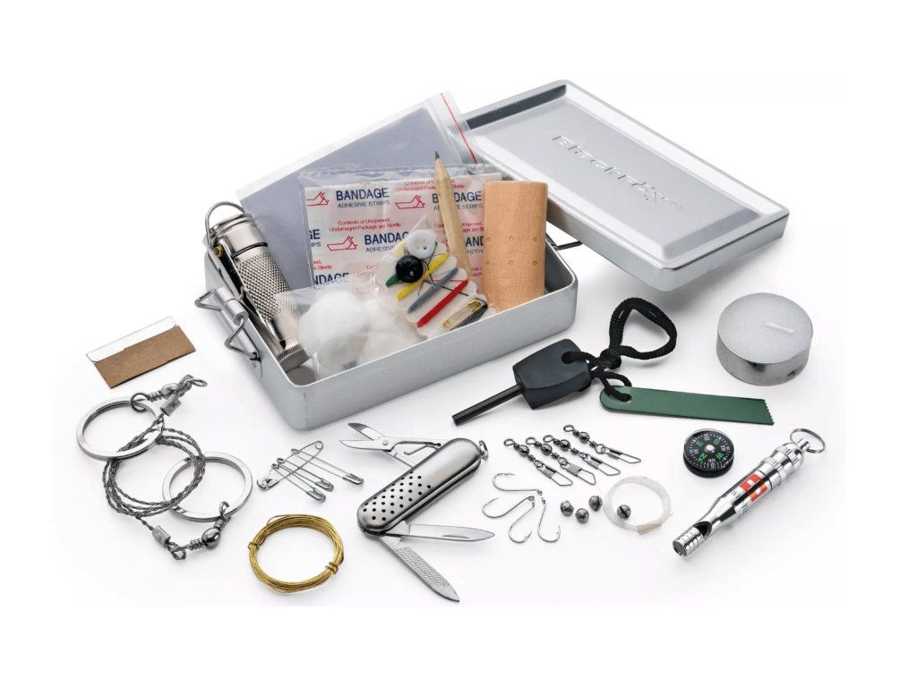 Dodáva sa s nylonovým puzdrom kompatibilným s MOLLE systémom a komplexnou súpravou na prežitie v uzatvárateľnej hliníkovej krabici vo vlastnom nylonovom vrecku.
