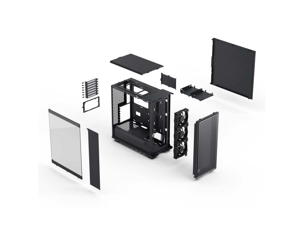 Fractal Epoch • jednoduchý přístup • síťovaná přední část • bočnice z tvrzeného skla (3mm) Typ: Midi Tower Podporuje základní desky: ATX/mATX/Mini-ITX Pole pro disková úložiště: * 2x 2,5'' * 2x 3,5''/2,5'' Počet rozšiřujících slotů: 7 Externí porty: * 1x USB typu C 20 Gb/s * 2x USB typu A 5 Gb/s * 1x kombinovaný konektor audio/mikrofon Podpora pro přídavné chlazení Ventilátory: 6x 120 mm nebo 4x 140 mm * přední: 3x 120 mm nebo 2x 140 mm * horní: 2x 120/140 mm * zadní: 1x 120 mm Předinstalované ventilátory: * přední: 3x 120 mm Momentum Chladiče: * přední: až 280/360 mm * horní: až 240 mm * zadní: 120 mm Typ napájení: ATX Maximální délka zdroje: 1 přihrádka pro pevný disk: max. 255 mm, 2 přihrádka pro pevný disk: max. 155 mm Maximální délka GPU: až 372 mm s předním ventilátorem nebo až 345 mm s předním chladičem Maximální výška chladiče CPU: 170 mm Prachové filtry: zdroj Prostor pro správu kabelů: 30mm Průchodky pro vedení kabelů: ano Barva: černá Rozměry: 447x215x469mm Hmotnost: 7,81kg Obsah balení: * počítačová skříň * krabička s příslušenstvím (4x šroub k napájecímu zdroji, 8x šroub k základní desce, 1x distanční sloupek k základní desce, 16x šroub k SSD, 8x šroub k HDD, 8x gumová podložka k HDD, 1x lapač kuliček, 4x stahovací páska) * manuál k produktu Záruka: 2 roky Odkaz na web výrobce: https://www.fractal-design.com/products/cases/epoch/epoch/black-tg-light-tint/Dodatočné parametre