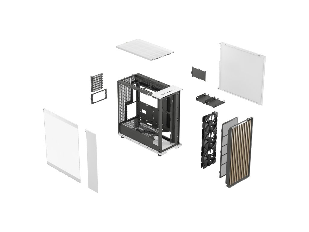 Fractal North XL • jednoduchý přístup • s elegantními detaily ze dřeva a slitiny • s certifikací FSC • přirozená ventilace díky otevřené přední části a stylově integrovanému hornímu síťovanému panelu • levá bočnice - tvrzené sklo, 3mm Typ: Midi Tower Podporuje základní desky: E-ATX (330mm)/ATX/mATX/Mini-ITX Pole pro disková úložiště: * 2x 2,5'' * 2x 3,5''/2,5'' Počet rozšiřujících slotů: 7 Externí porty: * 1x USB 3.1 Gen 2 typ-C * 2x USB 3.0 * 1x audio konektor 3,5mm * 1x mikrofon 3,5mm Podpora pro přídavné chlazení Ventilátory: 7x 120mm nebo 6x 140mm * přední: 3x 120/140mm * horní: 3x 120 nebo 2x 140/180mm * zadní: 1x 120/140mm Předinstalované ventilátory: * přední: 3x Aspect 140mm PWM Chladiče: * přední: až 420/360mm * horní: až 280/360mm * zadní: 120/140mm Typ napájení: ATX Maximální délka zdroje: 1 přihrádka na HDD: max. 290mm, 2 přihrádky na HDD: max. 175mm Maximální délka GPU: 413mm s namontovaným předním ventilátorem/380mm s předním 420/360mm chladičem o tloušťce 33mm Maximální délka PSU: 155mm s držákem ventilátoru/185mm bez Prachové filtry: přední, PSU Prostor pro správu kabelů: 29mm Průchodky pro vedení kabelů: ano Barva: bílá (Chalk white) Rozměry: 503x240x509mm Hmotnost: 9,5kg Obsah balení: * North XL * box s příslušenstvím * uživatelská příručka Záruka: 2 roky Odkaz na web výrobce: https://www.fractal-design.com/products/cases/north/north-xl/chalk-white-tg-clear/Dodatočné parametre