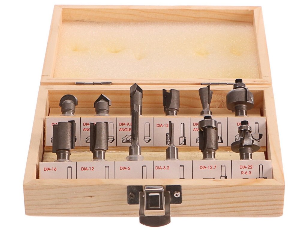 Sada 12 dřevoobráběcích fréz umožňuje přesné zpracování materiálu. HSS rychloupínací čepele umožňují použití nožů pro zpracování masivního dřeva, dřevotřískové desky, MDF a dalších materiálů na bázi dřeva. Použité ložiska snižují valivý odpor, což je důvod, proč se frézy jsou ideální pro tvarování kulatého materiálu. Celý je umístěn v praktickém dřevěném pouzdře, kde každý řezač má své vlastní podepsané místo.Vlastnosti produktu