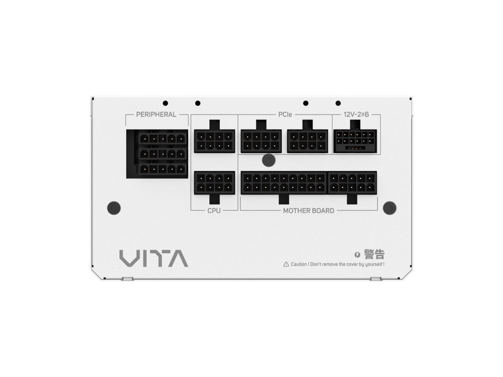 FSP VITA GM 1000W ,(White Edition) Vlastnosti *ATX 3.1 a PCIe Gen 5.1 *účinnost >,90% při typické zátěži *certifikace 80 PLUS® Gold *120mm ventilátor s hydraulickým ložiskem *105°C japonský velkokapacitní kondenzátor *kompletní ochrana: OCP, OVP, SCP, OPP, UVP, OTP Technické parametry Model: VITA-1000GM Výkon: 1000W Formát: ATX12V V3.1 PFC: aktivní Typ ventilátoru: HYB 120mm Rozměry: 140×150×86mm Účinnost: 90% Vstupní napětí: 100-240V ac Vstupní proud: 12-6A Vstupní frekvence: 50-60Hz Konektory: *1x MB 20+4 pin *2x CPU 4+4 pin *1x PCIe 12V-2x6 *4x PCIe 6+2 pin *8x SATA *4x Molex (peripheral) Více informací naleznete na stránkách výrobce: https://www.fsplifestyle.com/en/product/VITAGM1000W_WHITE.htmlDodatočné parametre