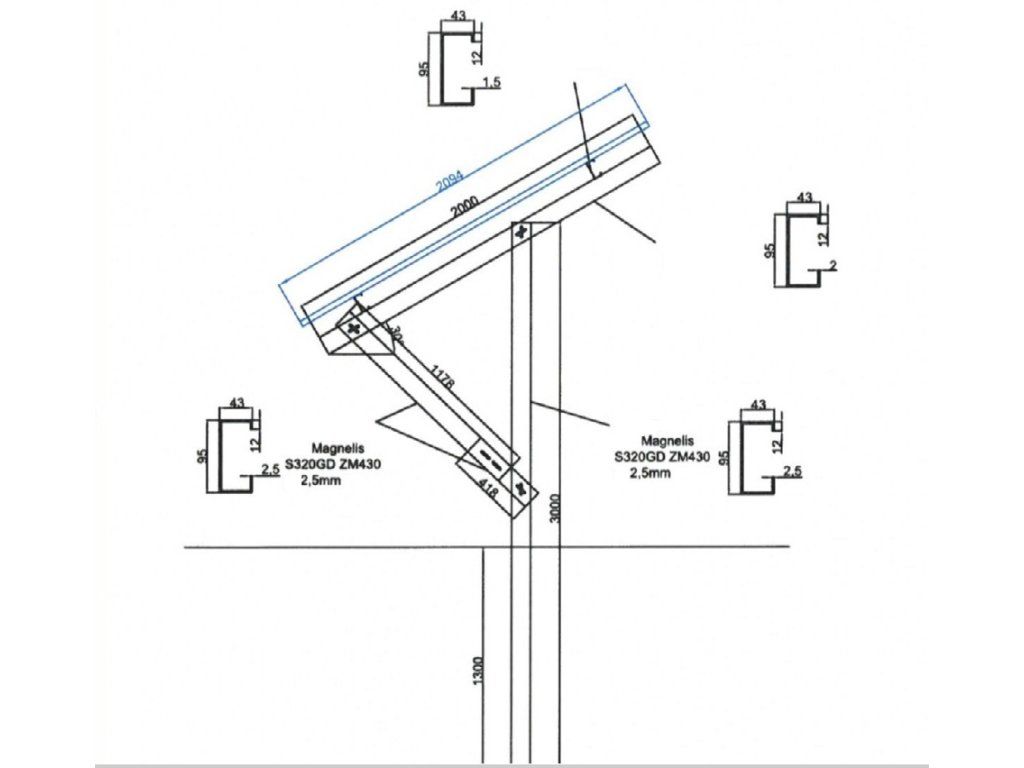 Rozmery konštrukčných profilov 95x43x12x hrúbka 2,5mm