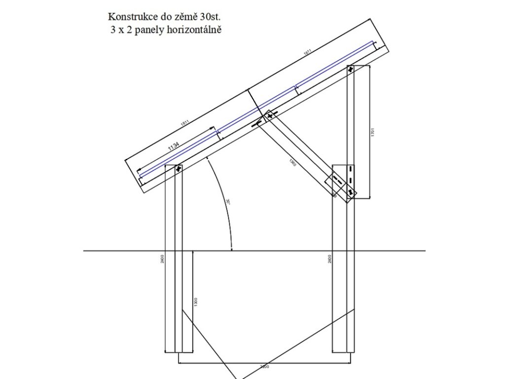 FVE konštrukcia SAP30S6P32H pre 6 panelov 30stupňu do zeme 3x2 panely s orientáciou horizontálneKonštrukcia z magnelisovej ocele s dlhou životnosťou pre 6 ks fotovoltaických panelov vhodná napr. pre systémy na ohrev vody TÚV