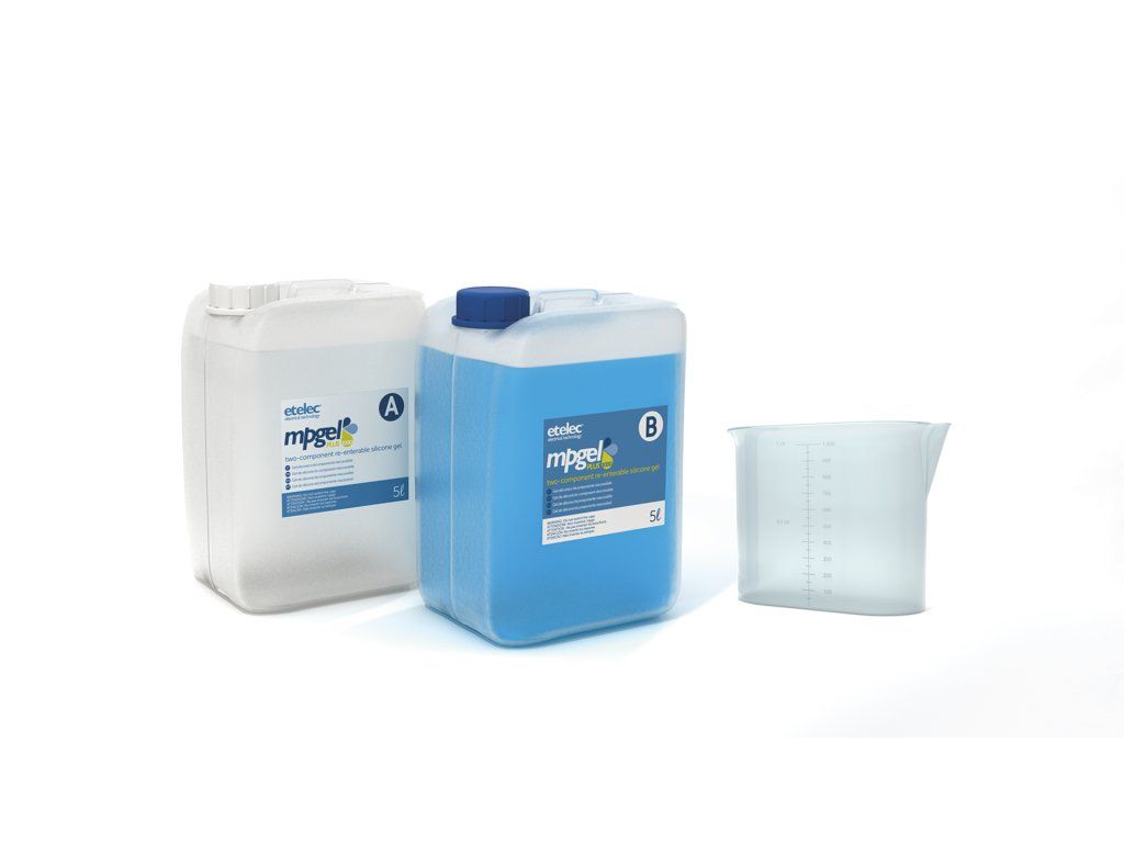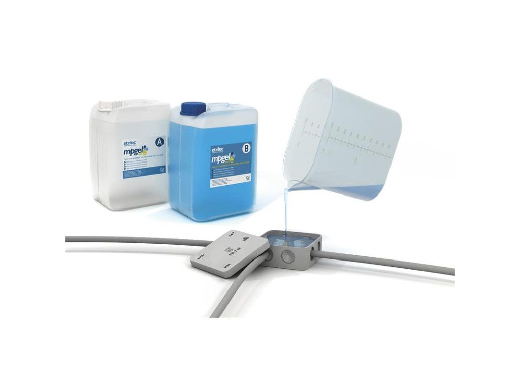 Gel dvousložkový MPGEL plus-1000 (10 litrů - 2x kanystr po 5l), bez expirace, izolační zalévací gel, rozebíratelné spojení, barva: transparentní modrá, doba zpracovatelnosti: cca 3 minuty, doba tuhnutí: cca 12 minut.Dvousložkový zalévací gel - ETELEC MPGEL. Pro výplň a izolaci elektrických spojů. Rychle a jednoduše chrání spoj před nepříznivými přírodními vlivy jako je vlhkost, prach a další nečistoty. Složka gelu "A" i složka gelu "B" je průhledná hmota s nízkou viskozitou ("dobře teče") a po smíchání a vytuhnutí zůstává po celou dobu životnosti spoje rosolovitá. Při samotném vylévání krabičky nebo jiného média krásně zatéká do všech zákoutí. Spoj lze po vytuhnutí jednoduše rozebrat. Gel je šetrný k životnímu prostředí. Navíc nemá žadnou expiraci - můžete jej uchovávat/skladovat mít jej k použití kdykoliv bude potřeba.