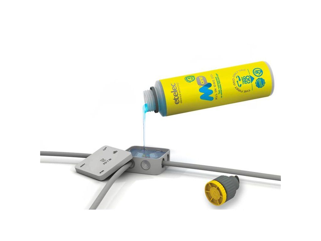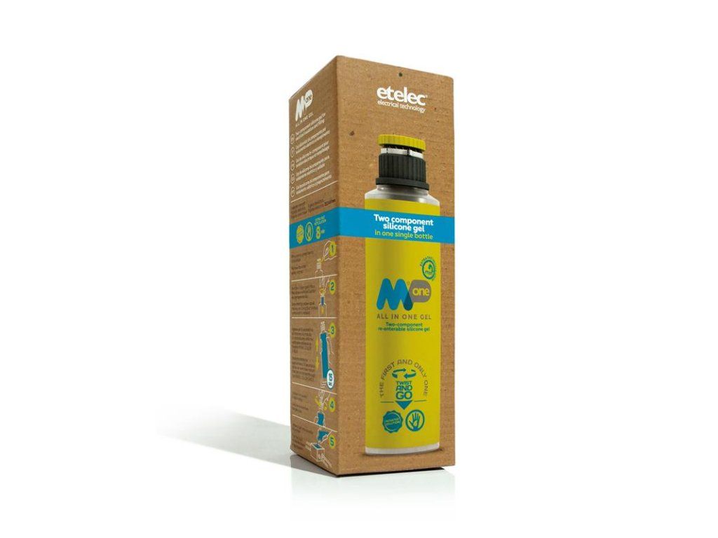 Gel dvousložkový MPone 300 (0,3 litru -1 láhev ), bez expirace, izolační zalévací gel, rozebíratelné spojení, barva: transparentní modrá, doba zpracovatelnosti: cca 15 sekund, doba tuhnutí: cca 8 minut při teplotě 23°C. Dvousložkový zalévací gel - ETELEC MPone. Pro výplň a izolaci elektrických spojů. Rychle a jednoduše chrání spoj před nepříznivými přírodními vlivy jako je vlhkost, prach a další nečistoty. Složky gelu "A" i složka gelu "B" jsou obsaženy v jedné láhvy. Po smíchání obou složek gelu je výsledná hmota průhledná s nízkou viskozitou a po vytuhnutí zůstává po celou dobu životnosti spoje rosolovitá. Při samotném vylévání krabičky nebo jiného média krásně zatéká do všech zákoutí. Spoj lze po vytuhnutí jednoduše rozebrat. Gel je šetrný k životnímu prostředí. Navíc nemá žadnou expiraci - můžete jej uchovávat/skladovat mít jej k použití kdykoliv bude potřeba. Dielektrická pevnost 25,5 kV/mm.Dodatočné parametre