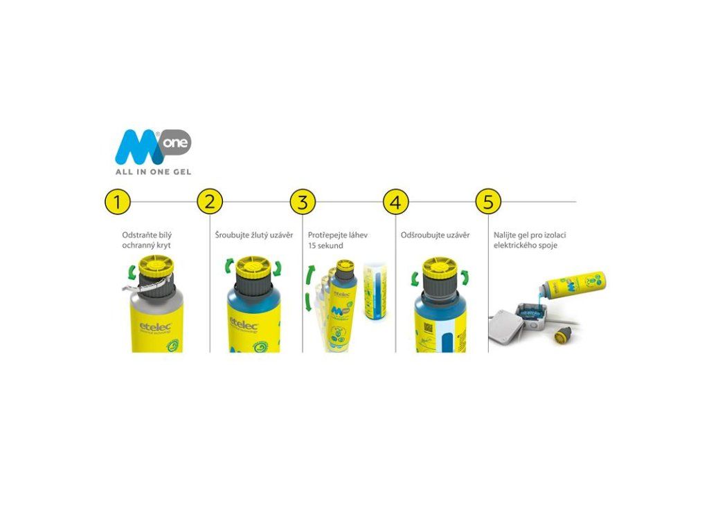 Gel dvousložkový MPone 600 (0,6 litru -1 láhev ), bez expirace, izolační zalévací gel, rozebíratelné spojení, barva: transparentní modrá, doba zpracovatelnosti: cca 15 sekund, doba tuhnutí: cca 8 minut při teplotě 23°C. Dvousložkový zalévací gel - ETELEC MPone. Pro výplň a izolaci elektrických spojů. Rychle a jednoduše chrání spoj před nepříznivými přírodními vlivy jako je vlhkost, prach a další nečistoty. Složky gelu "A" i složka gelu "B" jsou obsaženy v jedné láhvy. Po smíchání obou složek gelu je výsledná hmota průhledná s nízkou viskozitou a po vytuhnutí zůstává po celou dobu životnosti spoje rosolovitá. Při samotném vylévání krabičky nebo jiného média krásně zatéká do všech zákoutí. Spoj lze po vytuhnutí jednoduše rozebrat. Gel je šetrný k životnímu prostředí. Navíc nemá žadnou expiraci - můžete jej uchovávat/skladovat mít jej k použití kdykoliv bude potřeba. Dielektrická pevnost 25,5 kV/mm.Dodatočné parametre
