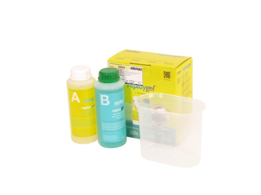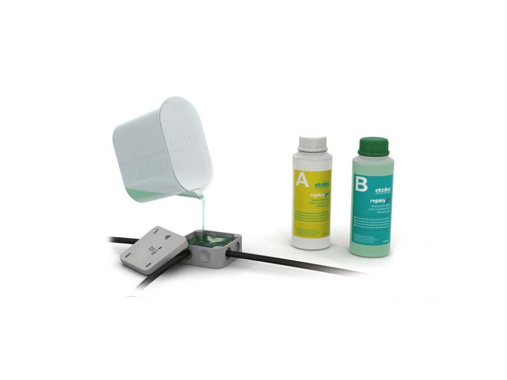 Gel dvousložkový REPLAYGEL (1 litr - 2x láhev po 0,5l), opakovaně použitelný, bez expirace, izolační zalévací gel, průzračně čistý, rozebíratelné spojení, barva: transparentní, doba zpracovatelnosti: cca 10 minut, doba tuhnutí: cca 25 minut. REPLAYGEL je dvousložkový silikonový gel pro výplň a izolaci elektrických spojů. Používá se například v instalačních krabičkách, kde zabraňuje přístupu vlhkosti, vodě a chrání spoj před dalšími vlivy, které mohou mít nežádoucí účinky takovéhoto druhu spojování vodičů.Hlavní výhodou je opakovatelné použití gelu.