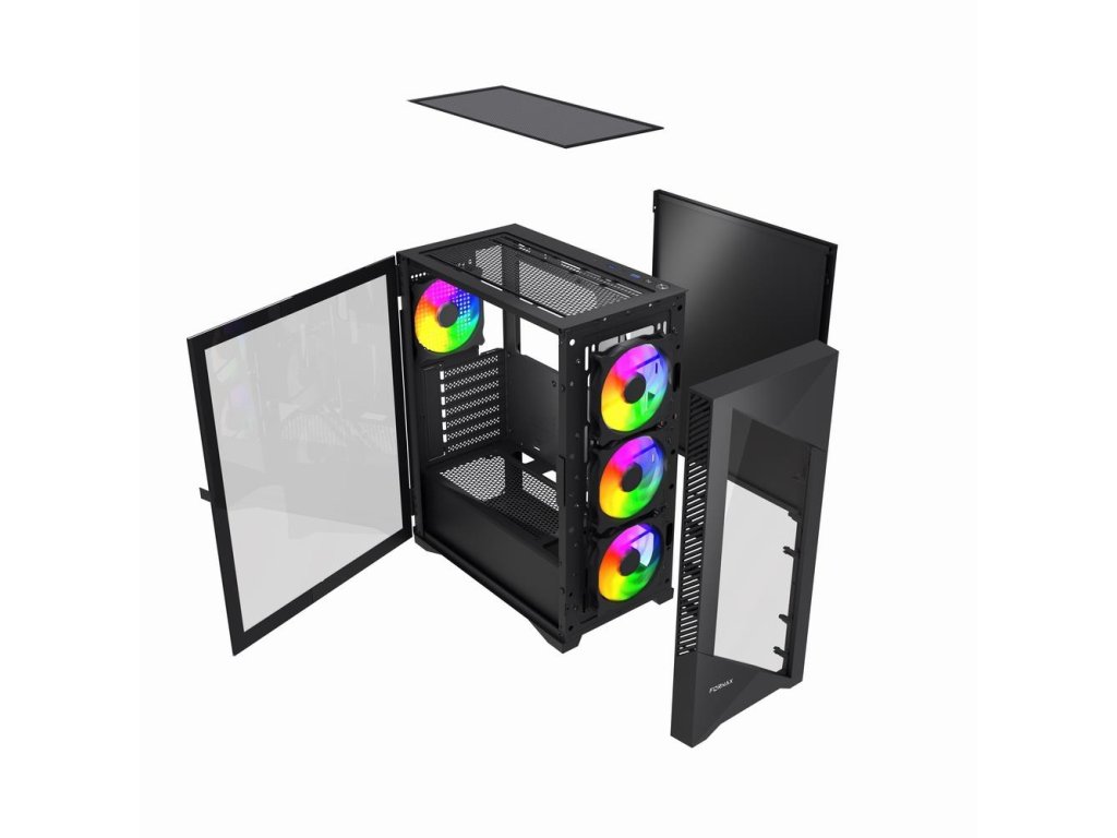 GEMBIRD Fornax 900 černá herní ATX počítačová skříň s ARBG podsvícením * šrouby pro všechny držáky * speciálně navržena pro správu kabelů * podpora vodního chlazení Podporuje základní desky: ATX Typ zdroje: ATX Pole pro disková úložiště: * 2x 3,5'' HDD * 3x 2,5'' SSD PCI rozšiřující sloty: 7 (včetně šroubů) Externí porty: * 2x USB 3.1 * 1x USB-C * 1x kombinovaný audio konektor (sluchátka, mikrofon) Podpora pro přídavné chlazení * přední: ventilátor 3x 120mm, chladič 1x 360mm * horní: ventilátor 2x 120mm * zadní: ventilátor 1x 120mm, chladič 1x 120mm Předinstalované ventilátory * přední: 3x 120mm (ARGB, PWM) * zadní: 1x 120mm (ARGB, PWM) Maximální výška chladiče CPU: 155mm Maximální délka VGA: 320mm Maximální délka PSU: 150mm Barva: černá Rozměry: 390x200x456mm Hmotnost: 4,7kg Záruka: 2 roky Odkaz na web výrobce: https://gembird.com/item.aspx?id=13368&,lang=skDodatočné parametre