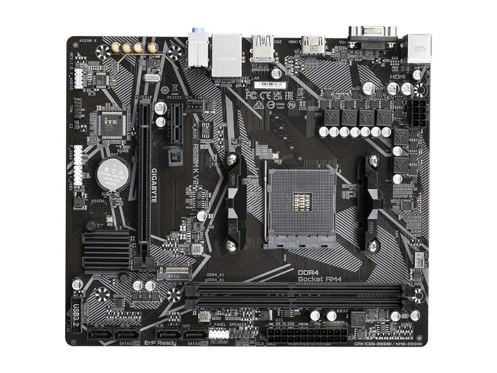 GIGABYTE A520M K V2 (rev. 1.0) Chipset: AMD A520 Rozměrový formát: Micro ATX (233x198mm) Podpora pro procesory: AMD Ryzen™ 5000 Series/Ryzen™ 5000 G-Series/Ryzen™ 4000 G-Series a Ryzen™ 3000 Series Patice procesoru: AM4 Paměť: * 2x DIMM patice podporující až 64GB, DDR4 5100(OC)/4800(OC)/4600(OC)/4400(OC)/4266(OC)/4133(OC)/4000(OC)/3866(OC)/3733(OC)/3600(OC)/3466(OC)/3400(OC)/3200/2933/2667/2400/2133 * dvoukanálová architektura paměti * podpora paměťových modulů Extreme Memory Profile (XMP) Grafická karta: * 1x D-Sub * 1x HDMI® 2.1 * maximální sdílená paměť 16GB Zvuková karta: kodek Realtek 7.1 Surround Sound High Definition Audio CODEC Ethernet: Realtek® GbE LAN WLAN + Bluetooth: ne Rozšiřující sloty: * 1x PCI Express x16 (podporuje PCIe 3.0 x16) * 1x PCI Express x1 (podporuje PCIe 3.0 x1) RAID řadič: podpora pro RAID 0/1/10 Úložný prostor: celkem podporuje 1 slot M.2 a 4 porty SATA 6Gb/s * 1x M.2, M key, typ 2280 (podpora SATA a PCIe 3.0 x4/x2) * 4x port SATA 6Gb/s USB: Zadní USB (celkem 6 portů) * 4x USB 3.2 Gen 1 * 2x USB 2.0/1.1 Přední USB (celkem 6 portů) * 1x USB 3.2 Gen 1 header - podpora dalších 2 portů USB 3.2 Gen 1 * 2x USB 2.0 header - podpora dalších 4 portů USB 2.0 Porty na zadním panelu: * 1x PS/2 dělený pro klávesnici/myš * 1x D-Sub * 1x HDMI * 4x USB 3.2 Gen 1 * 2x USB 2.0/1.1 * 1x RJ-45 * 3x audio jack Interní porty: Napájení * 1x 24-pin ATX hlavní napájecí konektor * 1x 8-pin ATX 12V napájecí konektor Související s ventilátorem a chlazením * 1x CPU fan header * 1x system fan header Související s úložištěm * 1x M.2 slot (Key M) * 4x SATA 6Gb/s port USB * 1x USB 3.2 Gen 1 header * 2x USB 2.0/1.1 header Ostatní * 1x front panel header * 1x front panel audio header * 1x Trusted Platform Module (TPM) header (2x 6pin, pouze pro modul GC-TPM2.0_S) * 1x speaker header * 1x Clear CMOS jumper * 1x chassis intrusion header BIOS: 1x 128Mb flash, AMI UEFI BIOS Odkaz na stránku výrobce: https://www.gigabyte.com/Motherboard/A520M-K-V2-rev-10#kfDodatočné parametre