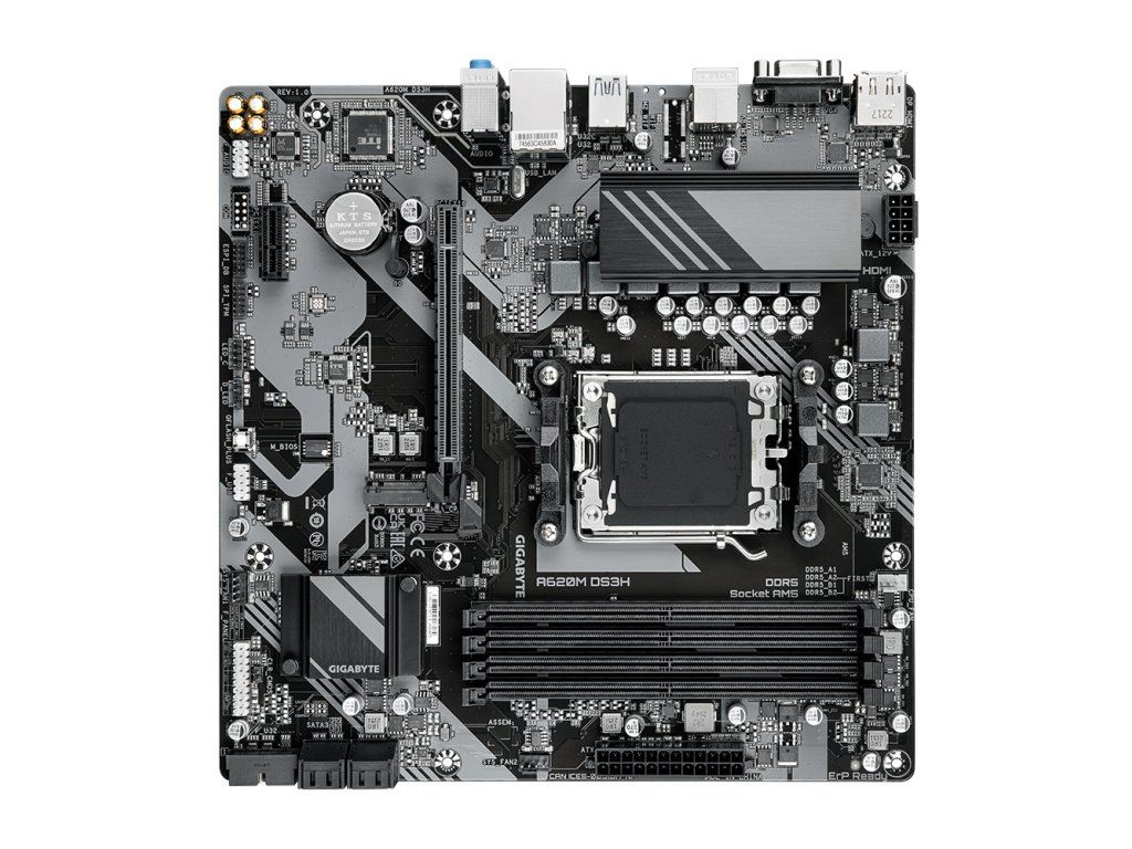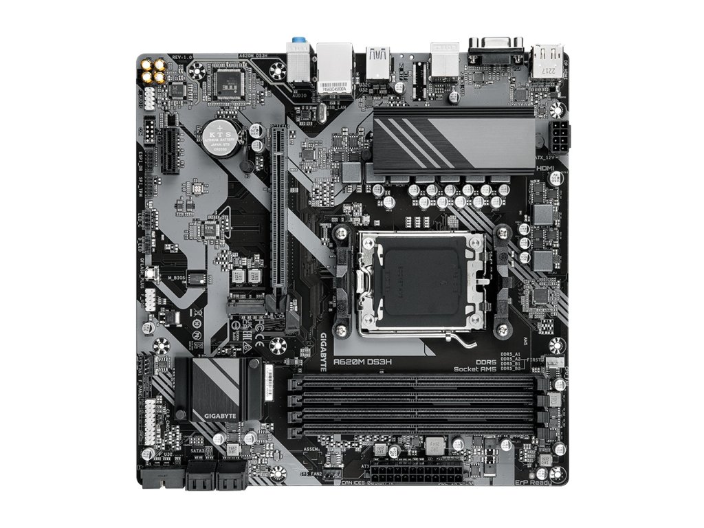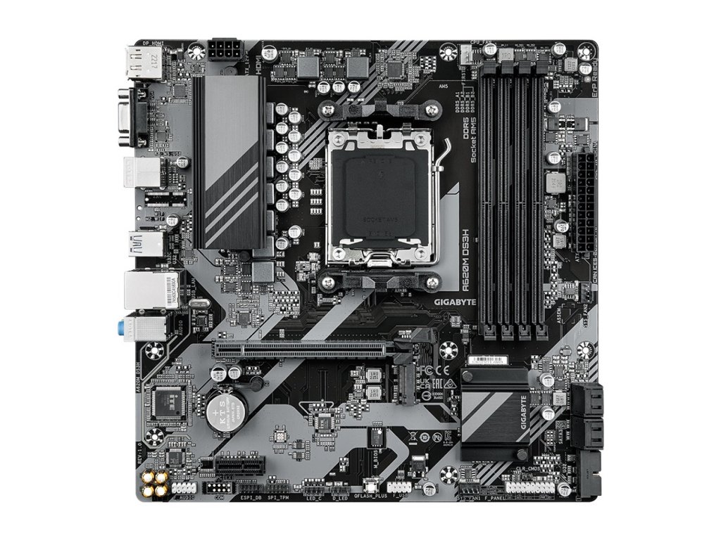 GIGABYTE A620M DS3H (rev. 1.0) * Smart Fan 6 * Q-Flash Plus Chipset: AMD A620 Rozměrový formát: Micro ATX (244x244mm) Podpora pro procesory: AMD Ryzen™ řady 7000 Patice procesoru: AM5 Paměť: * 4x DIMM patice podporující až 192GB (kapacita 48GB single DIMM), DDR5 6400(OC)/6200(OC)/6000(OC)/5600(OC)/5200/4800/4400 MT/s * dvoukanálová architektura paměti * podpora pro AMD EXtended Profiles for Overclocking (AMD EXPO™) * podpora paměťových modulů Extreme Memory Profile (XMP) Grafické výstupy: * 1x D-Sub * 1x DisplayPort 1.4 * 1x HDMI® 2.1 Zvuková karta: kodek Realtek 7.1 Surround Sound High Definition Audio CODEC Ethernet: Realtek® GbE LAN WLAN + Bluetooth: ne Rozšiřující sloty: * 1x PCI Express x16 (podporuje PCIe 4.0 x16) * 1x PCI Express x1 (podporuje PCIe 3.0 x1) RAID řadič: podpora pro RAID 0/1/10 pro úložná zařízení NVMe SSD a SATA Úložný prostor: celkem podporuje 1 slot M.2 a 4 porty SATA 6Gb/s * 1x M.2, M key, typ 2580 PCIe 4.0 x4/x2 * 4x port SATA 6Gb/s USB: Zadní USB (celkem 6 portů) * 1x USB typ-C®, s podporou USB 3.2 Gen 1 * 1x USB 3.2 Gen 1 * 4x USB 2.0/1.1 Přední USB (celkem 4 porty) * 1x USB 3.2 Gen 1 header - podpora dalších 2 portů USB 3.2 Gen 1 * 1x USB 2.0/1.1 header - podpora dalších 2 portů USB 2.0/1.1 Porty na zadním panelu: * 1x dělený PS/2 klávesnice/myši * 1x USB typ-C®, s podporou USB 3.2 Gen 1 * 1x USB 3.2 Gen 1 * 4x USB 2.0/1.1 * 1x HDMI * 1x DisplayPort * 1x D-Sub * 1x RJ-45 * 3x audio konektor Interní porty: Napájení * 1x 24-pin ATX hlavní napájecí konektor * 1x 8-pin ATX 12V napájecí konektor Související s ventilátorem a chlazením * 1x CPU fan header * 2x system fan header Související s úložištěm * 1x M.2 slot (Key M) * 4x SATA 6Gb/s port USB * 1x USB 3.2 Gen 1 header * 1x USB 2.0/1.1 header Ostatní * 1x adresovatelný LED strip header * 1x RGB LED strip header * 1x front panel header * 1x front panel audio header * 1x Trusted Platform Module header (pouze pro modul GC-TPM2.0 SPI/GC-TPM2.0 SPI 2.0) * 1x Clear CMOS jumper BIOS: 1x 256Mb flash, AMI UEFI BIOS, PnP 1.0a, DMI 2.7, WfM 2.0, SM BIOS 2.7, ACPI 5.0 Odkaz na stránku výrobce: https://www.gigabyte.com/Motherboard/A620M-DS3H-rev-10#kfDodatočné parametre