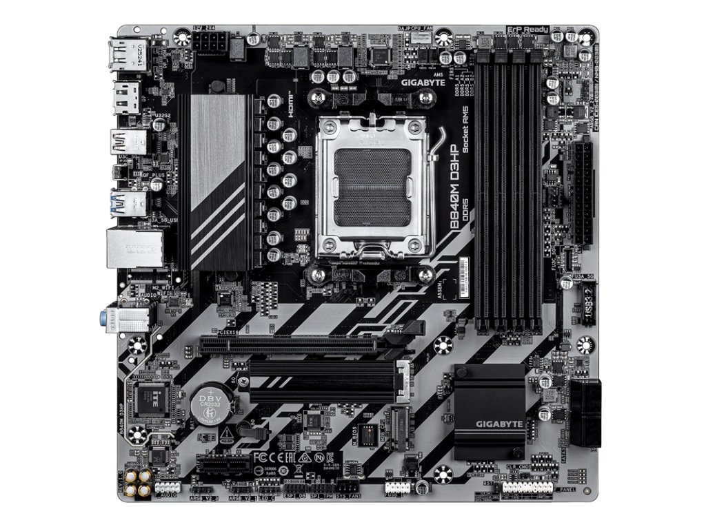 GIGABYTE ,B840M D3HP Chipset: ,AMD B840 Rozměrový formát: Mikro ,ATX (244x244 mm) Podpora pro procesory: ,7. až 9. gen Ryzen Patice procesoru: ,AM5 Paměť: , *4x DIMM patice podporující až 256GB, DDR5 ,8200(OC) / 8000(OC) / 7950(OC) / 7900(OC) / 7800(OC) / 7600(OC) / 7400(OC) / 7200(OC) / 7000(OC) / 6800(OC) / 6600(OC) / 6400 / 6200 / 6000 / 5800 / 5600 ,MT/s ,paměťové moduly *Dvoukanálová architektura paměti *Podpora paměťových modulů AMD EXtended Profiles for Overclocking (AMD EXPO™) a Extreme Memory Profile (XMP) Grafické porty: , *1x HDMI s maximálním rozlišením ,4096x2160 při 60 Hz ,- ,Podpora pro HDMI verzi ,2.1 a HDCP 2.3, podpora pro nativní porty kompatibilní s HDMI 2.1 TMDS *2x ,DisplayPort ,s maximálním rozlišením ,3840x2160 ,při 144 Hz ,- ,Podpora pro DisplayPort verzi 1.4 Zvuková karta: , *Kodek ,Realtek® Audio *High Definition Audio *2/4/5.1/7.1 ,kanálový Ethernet: ,Realtek® GbE LAN WLAN + Bluetooth: ,ne Rozšiřující sloty: , *1x PCI Express x16 podporuje PCIe 4.0 a běží na x16 ,(PCIEX16) *1x PCI Express x1 podporuje PCIe 3.0 a běží na x1 RAID řadič: , *RAID 0, RAID 1 a RAID 10 podpora pro úložná zařízení SATA *RAID 0, RAID 1, RAID 5 a RAID 10 podpora pro úložná zařízení NVMe SSD Úložný prostor: , *1x M.2, M key typ ,2580/2280 ,- podpora PCIe 4.0 x4/x2 SSD (M2A_CPU) *1x M.2, M key typ 2280 ,- podpora PCIe 4.0 x4/x2 SSD ,(M2B_CPU) *4x SATA 6Gb/s , USB: , Zadní USB *1x ,USB Type-C® ,s podporou USB 3.2 Gen 1 *1x ,USB 3.2 Gen 2 Type-A (červený) *1x ,USB 3.2 Gen 1 *3x USB 2.0/1.1 Přední USB *1x USB ,Type-C® header s podporou USB 3.2 Gen 1 *1x USB 3.2 Gen 1 header - podpora dalšího 1 USB 3.2 Gen 1 *1x USB 2.0/1.1 header - podpora dalšího 1 ,USB 2.0/1.1 Interní porty: , Napájení *1x ,24pinový hlavní napájecí konektor ATX *1x ,8pinový napájecí konektor ATX 12V Související s ventilátorem a chlazením *1x ,CPU fan header *2x ,system fan header Související s úložištěm *2x M.2 slot (M key) *4x SATA 6Gb/s port USB *1x USB ,Type-C® header *1x USB 3.2 Gen 1 header *1x USB 2.0/1.1 header Ostatní *3x adresovatelný RGB Gen2 LED strip header *1x ,RGB LED strip header *1x ,front panel header *1x ,front panel audio header *1x Trusted Platform Module header (pouze pro modul ,GC-TPM2.0 SPI V2) *1x ,reset jumper *1x ,Clear CMOS jumper Porty na zadním panelu: , *1x ,HDMI *2x DisplayPort *1x tlačítko Q-Flash Plus *1x ,USB Type-C® ,s podporou USB 3.2 Gen 1 *1x ,USB 3.2 Gen 2 Type-A (červený) *1x ,USB 3.2 Gen 1 *3x USB 2.0/1.1 *1x ,RJ-45 *3x audio jack BIOS: ,1x 256Mb flash, AMI UEFI BIOS, PnP 1.0a, DMI 2.7, WfM 2.0, SM BIOS 2.7, ACPI 5.0 Odkaz na stránku výrobce: ,https://www.gigabyte.com/Motherboard/B840M-D3HPDodatočné parametre