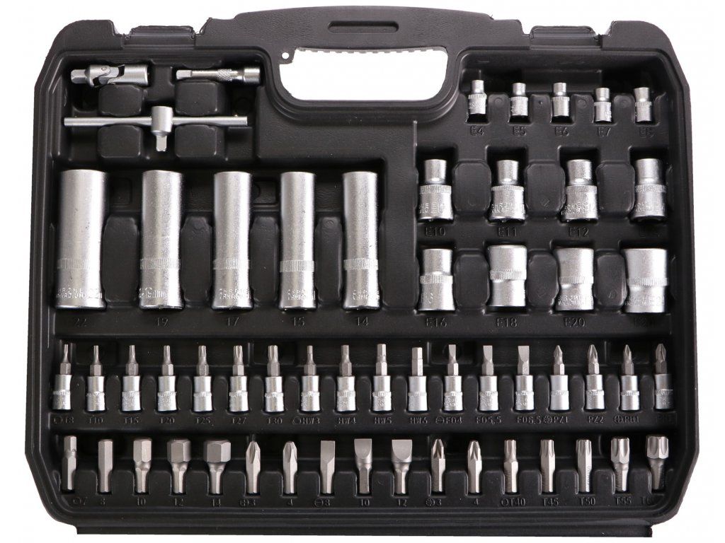 Praktická gola sada so 108 dielmi hlavíc a bitov s račňami v odolnom plastovom kufri. Táto gola sada si nájde miesto v každej dielni alebo garáži. Obsahuje celú škálu nástrčných hlavíc, zástrčných kľúčov, bitov, dve račne, univerzálne skrutkovacie rukoväť a ďalšie.