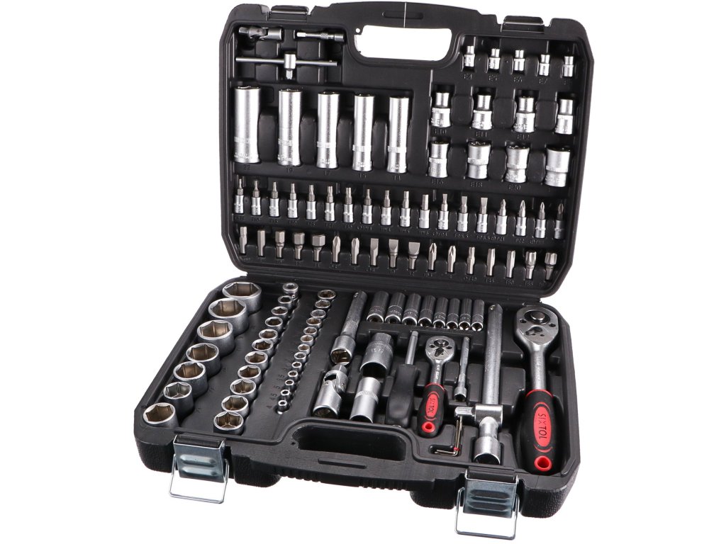 Kompletní gola sada se 108 díly hlavic a bitů s ráčnami v odolném plastovém kufru. Tato gola sada si najde místo v každé dílně nebo garáži. Obsahuje celou škálu nástrčných hlavic, zástrčných klíčů, bitů, dvě ráčny, univerzální šroubovací rukojeť a další.Hlavní výhody: