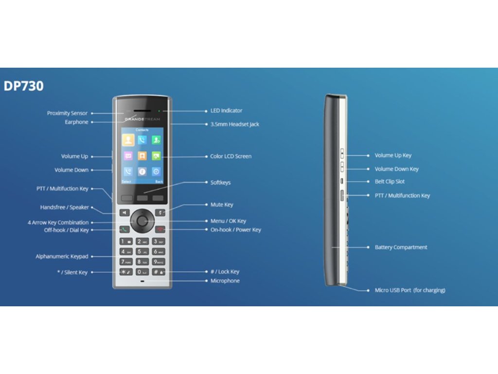 Grandstream DP730 IP tel., 2,4'' bar. displ., 2SIP úč., video, BT, Micro USB, HAC,